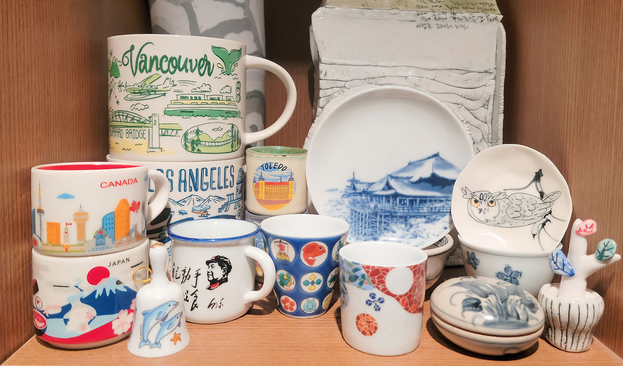 여행지에서 하나 둘 수집한 것으로, 국가마다 사뭇 다르지만, 백자와 푸른색을 선호하는 공통점을 발견할 수 있겠다.