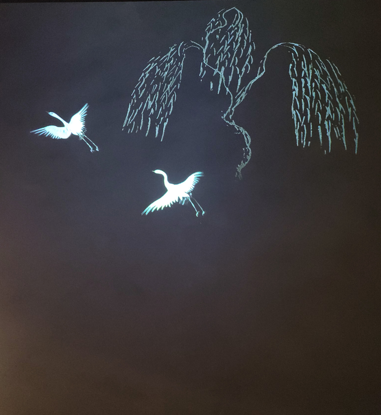 유유히 학이 노닌다. 너울대는 버드나무 가지가 낭만적이다.