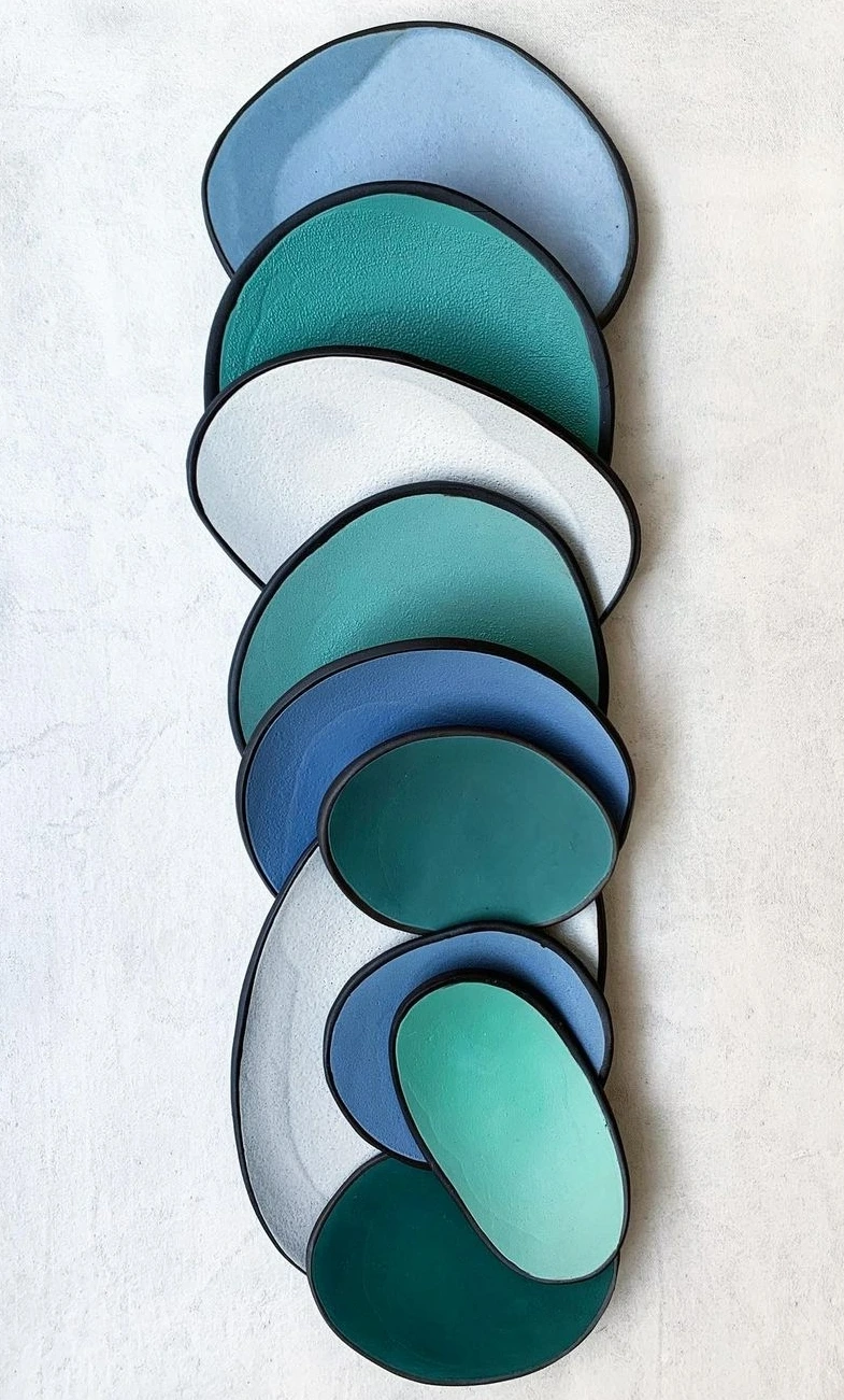 그녀는 색감이 아주 좋다. 작업은 비정형의 접시를 만들지만, 파렛트를 옮겨놓은 듯한 색감과 오브제 구성이 돋보인다. 나는 그녀가 Persian Blue를 가장 멋지게 표현하는 사람이라 생각한다.