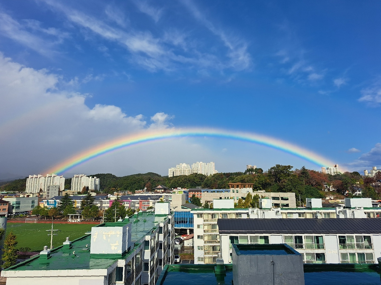 파란 하늘에 진짜 그림 같은 무지개가 떴다.