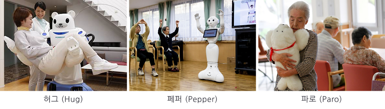 일본의 한 요양원은 세 종류의 돌봄 로봇을 도입했다.