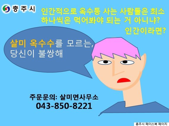 원래는 발표하는 날에 충주시 대학찰 옥수수를 서너 박스 삶아서 가져가려 했다. 그래서 강의 시작 전에 청중이 보는 앞에서 상자를 개방하고 김이며 냄새를 폴폴 풍기다 하나씩 나눠주면서 시작하려고 했다. 크흐. 충주시는 그 전에 오프라인에서 옥수수, 고구마 등 농특산물을 홍보했고 경품으로 나눠줬었다. 당시 온라인에서 충주시 최대 유행어는 ‘옥수수 털어도 돼요?’였다. 그런데 문제가 있었다. 거래하는 농가가 충주 도심에서 너무 멀어 차를 타고 30분을 가야 하는 거리였다. 서울 가는 동선이 1시간 이상이 늘어났다. 택배를 보낼까도 생각했는데 옥수수가 많은데 거리는 멀다보니 비용이 상당했다. 냉동 진공포장 옥수수인데 미리 보냈다가 그쪽 식당에서 쪄달라고 할까싶어 식당까지 알아봤지만 시원찮았다. 그 많은 인원이 먹을 대량의 옥수수를 강의 시간에 최상의 컨디션으로 먹을 수 있게 쪄 가려면 식당용 큰 솥에 물을 올려서 오랜시간 끌여야했다.(물이 많으니까) 하지만 강의 시간이 오후 2시 경이었기 때문에 식당은 점심식사를 준비하고 정리해야했기 때문에 옥수수를 삶아줄만한 식당을 구할 수는 없었다. 그렇다고 판매처에서 아침부터 무리해서 삶아간다한들 옥수수가 식으면 최고의 맛을 보여줄 수 없었다. 나는 갓 삶은 옥수수에서 나오는 김, 냄새, 그리고 식감까지 재현하고 싶었다.