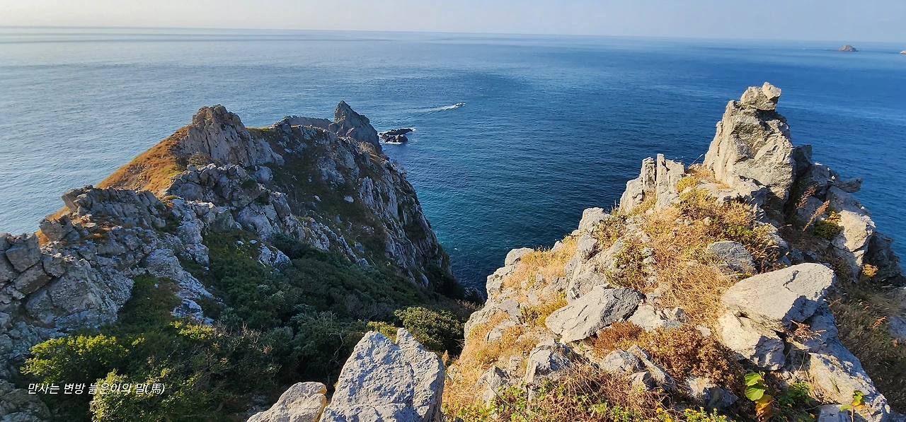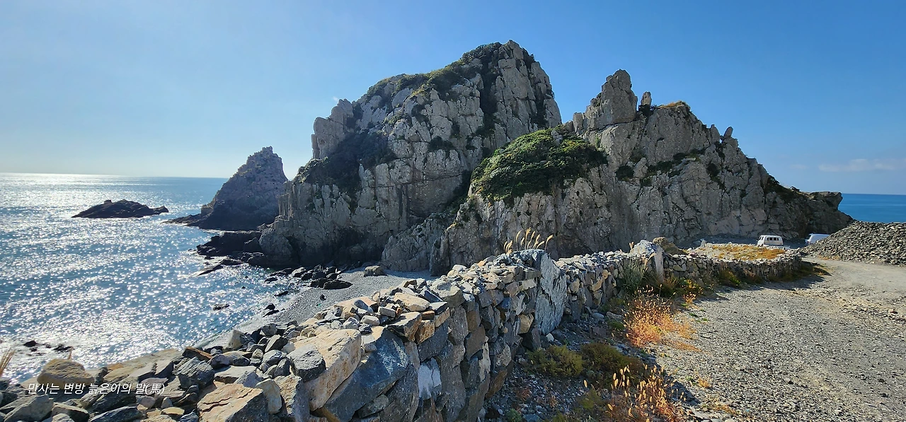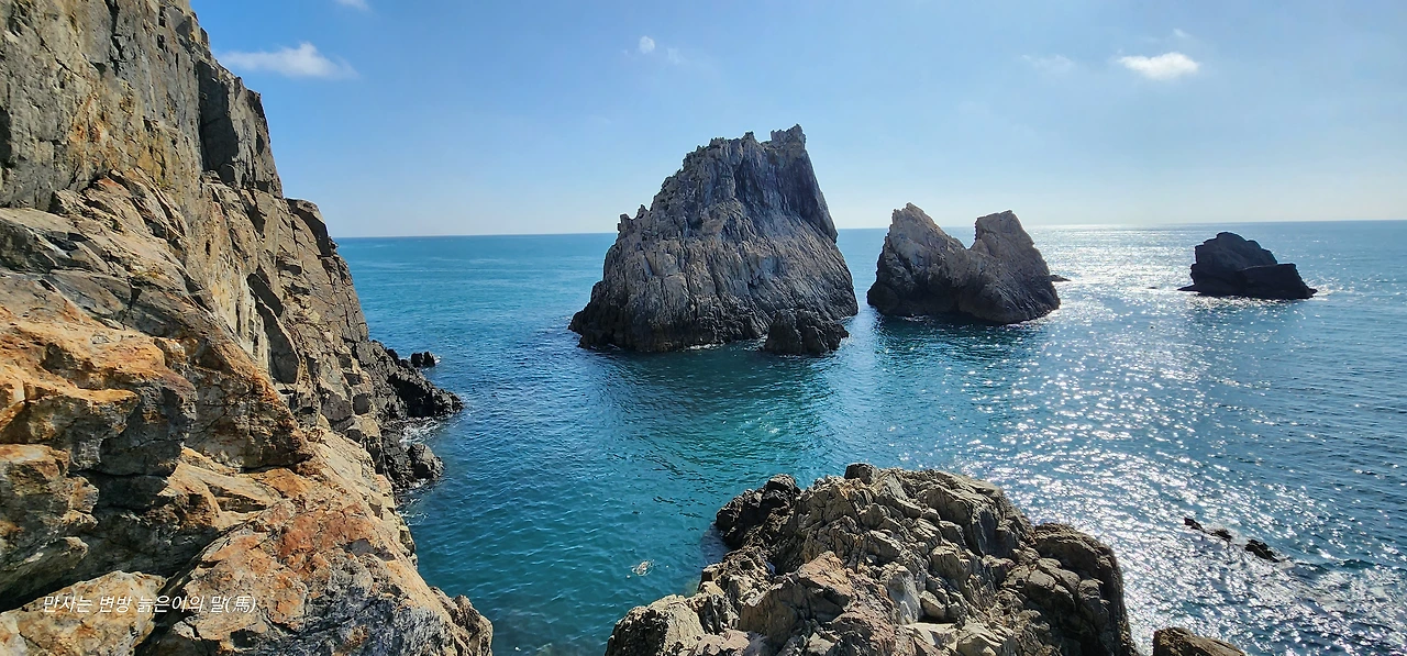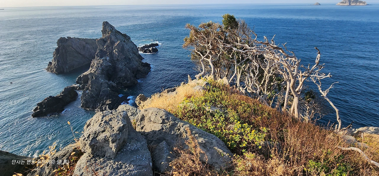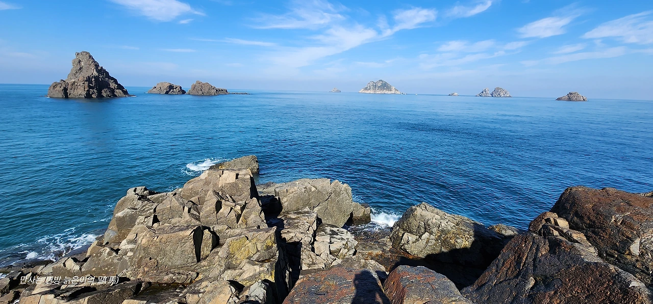 앞바다에 뜨있는 바위섬들이 한가롭습니다