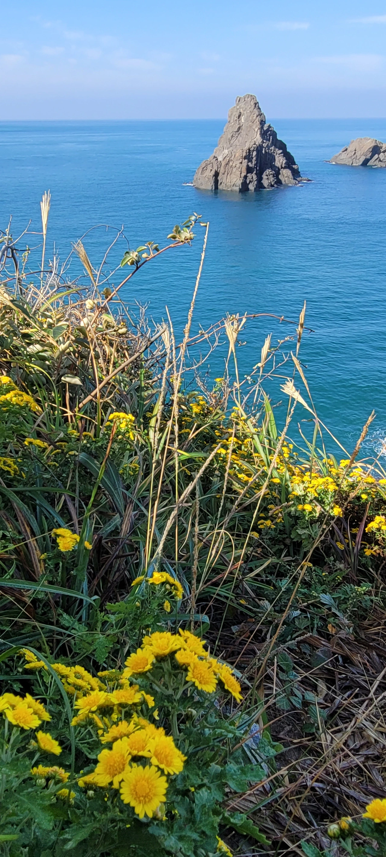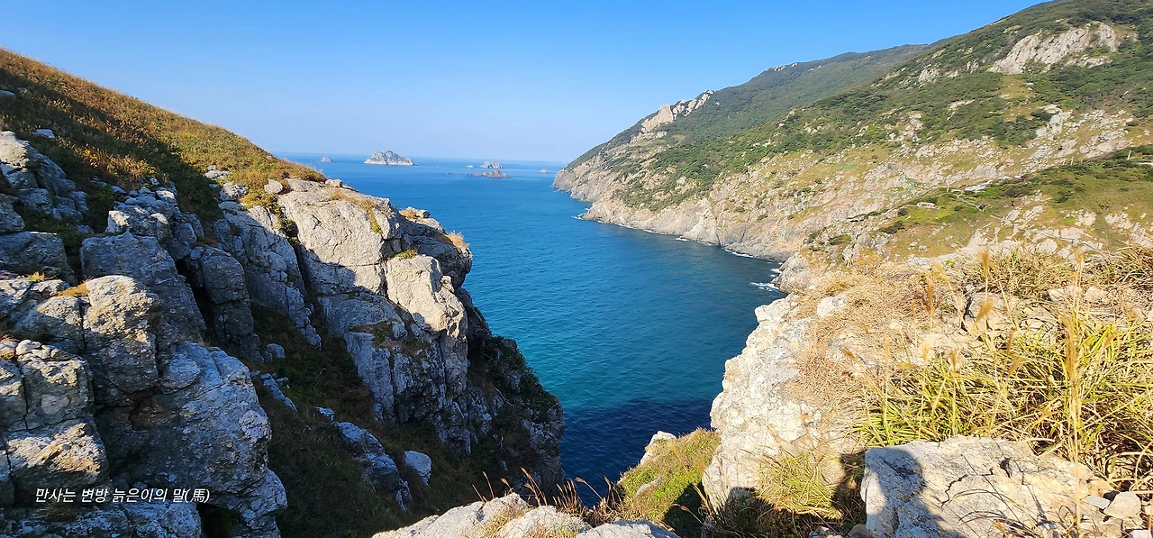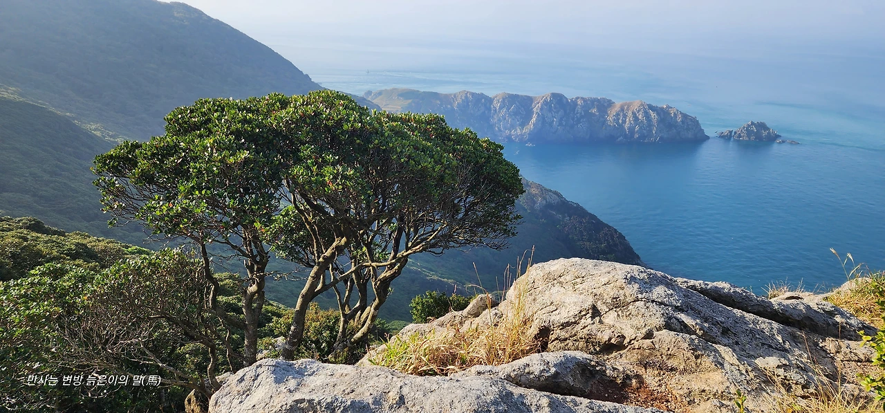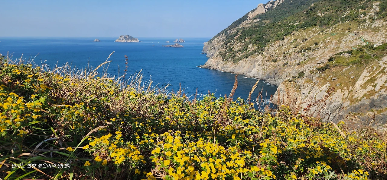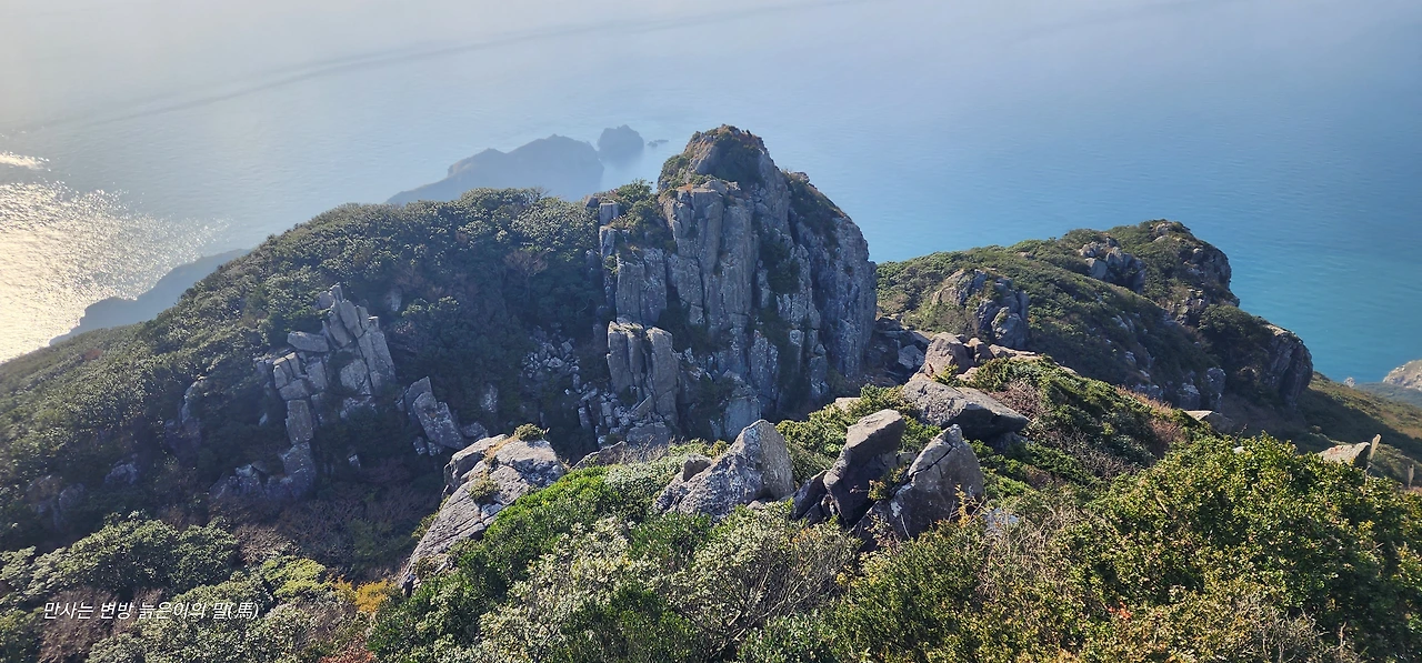 앞바다에 뜨있는 바위섬들이 한가롭습니다
