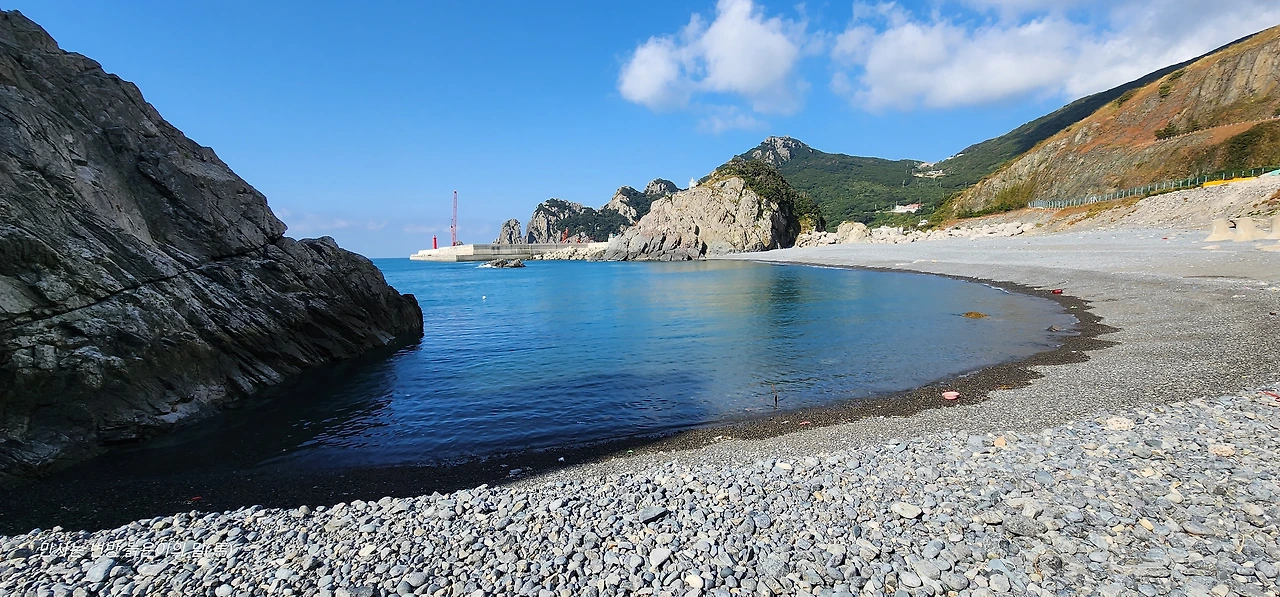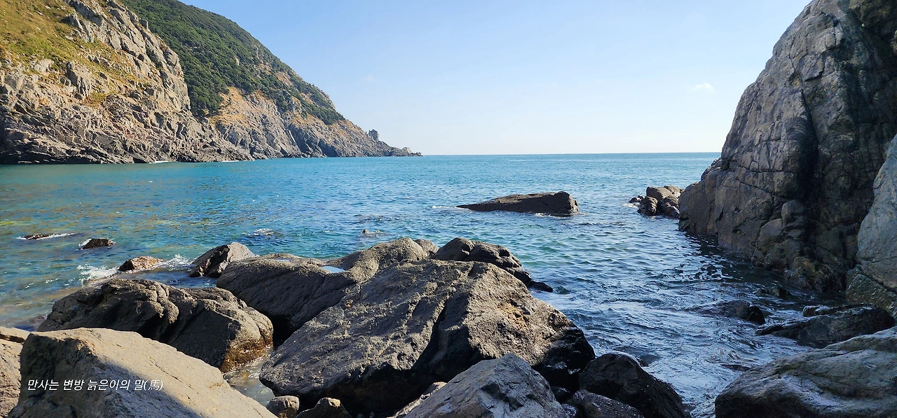 등대지기 님께 물을 보충하고 커피도 한잔 하며 등대 앞 바닷가로 나아가 해발 0까지 내려갔었는데요