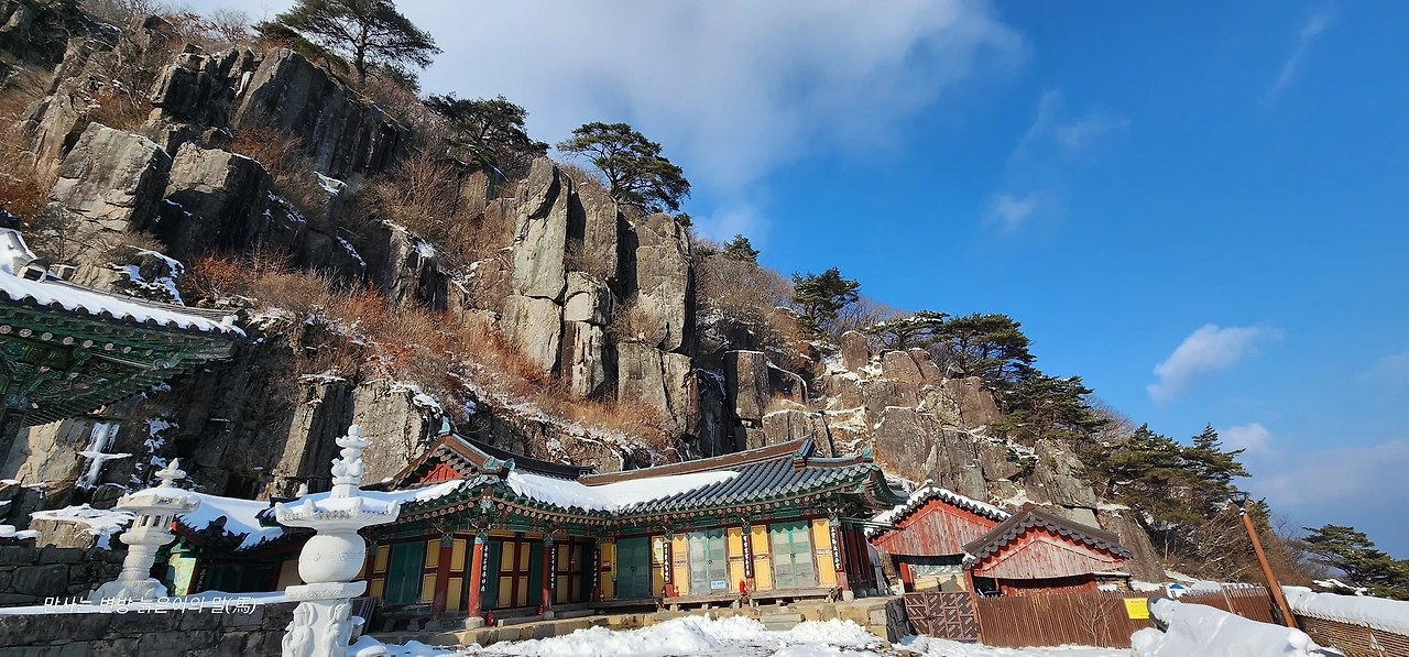 규봉암에 도착하기만 하면 법당 뒤로 보이는 광석대와