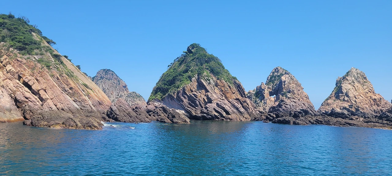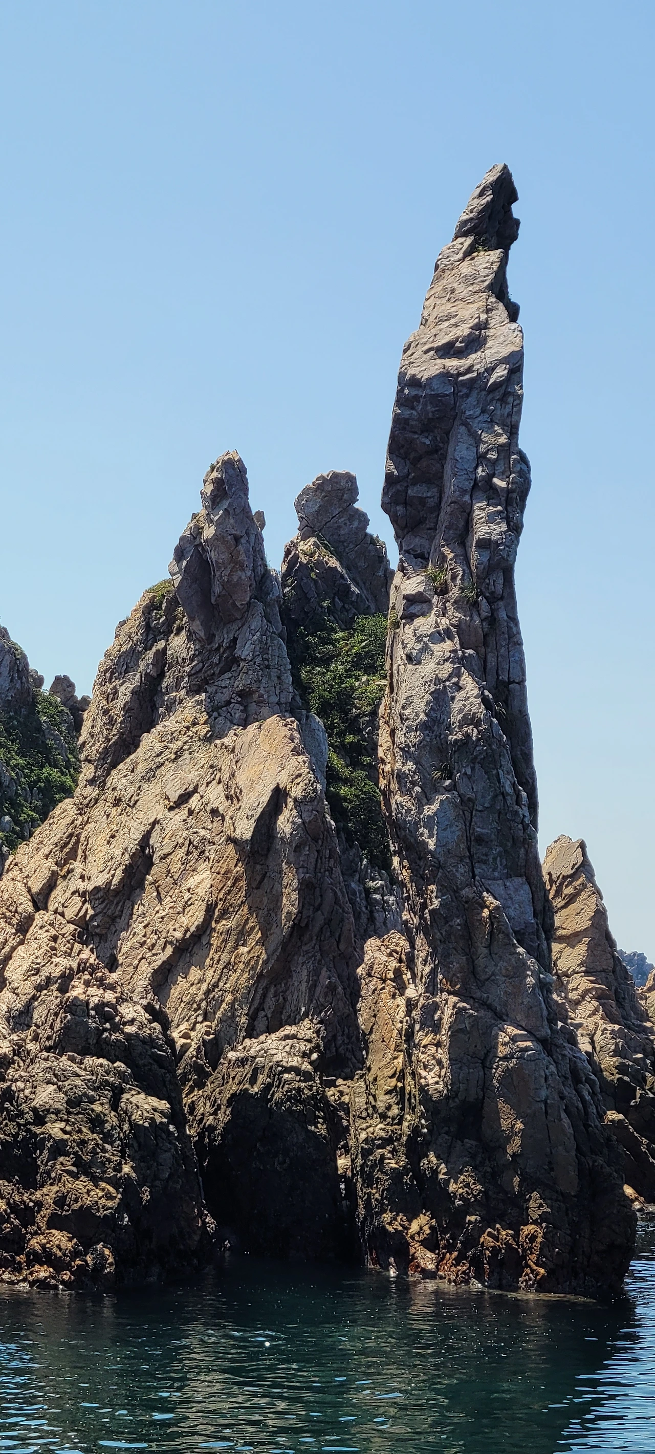 유람선에서 보면 철분이 많은 암석들이 불그스름하며 형상이 기상천외합니다