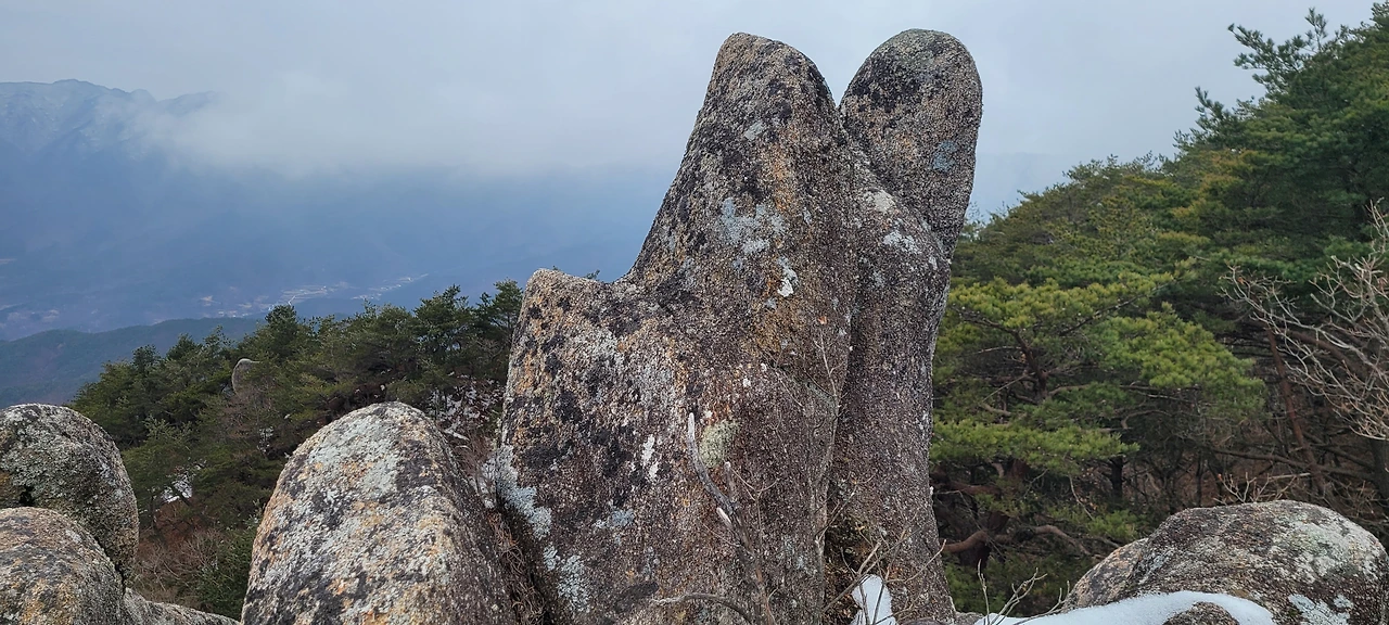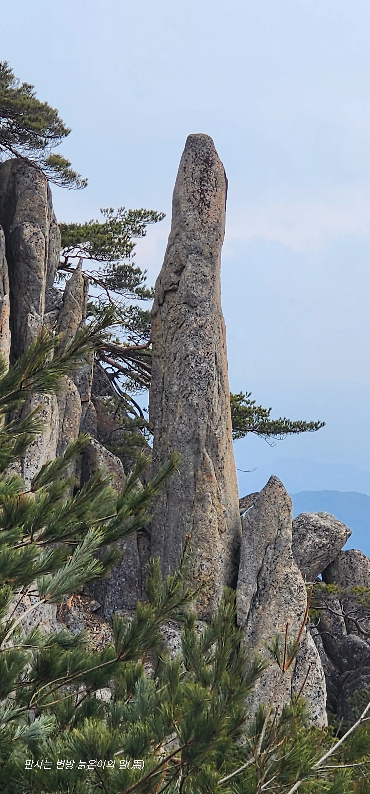매화산의 마스코트인 미어캣바위가 어디서나 선명하고 유리구두와 돛대바위, 부처바위도 걸물입니다만 출입을 통제하기 때문에 남산제일봉에서는 접근이 매우 걸쩍지근합니다