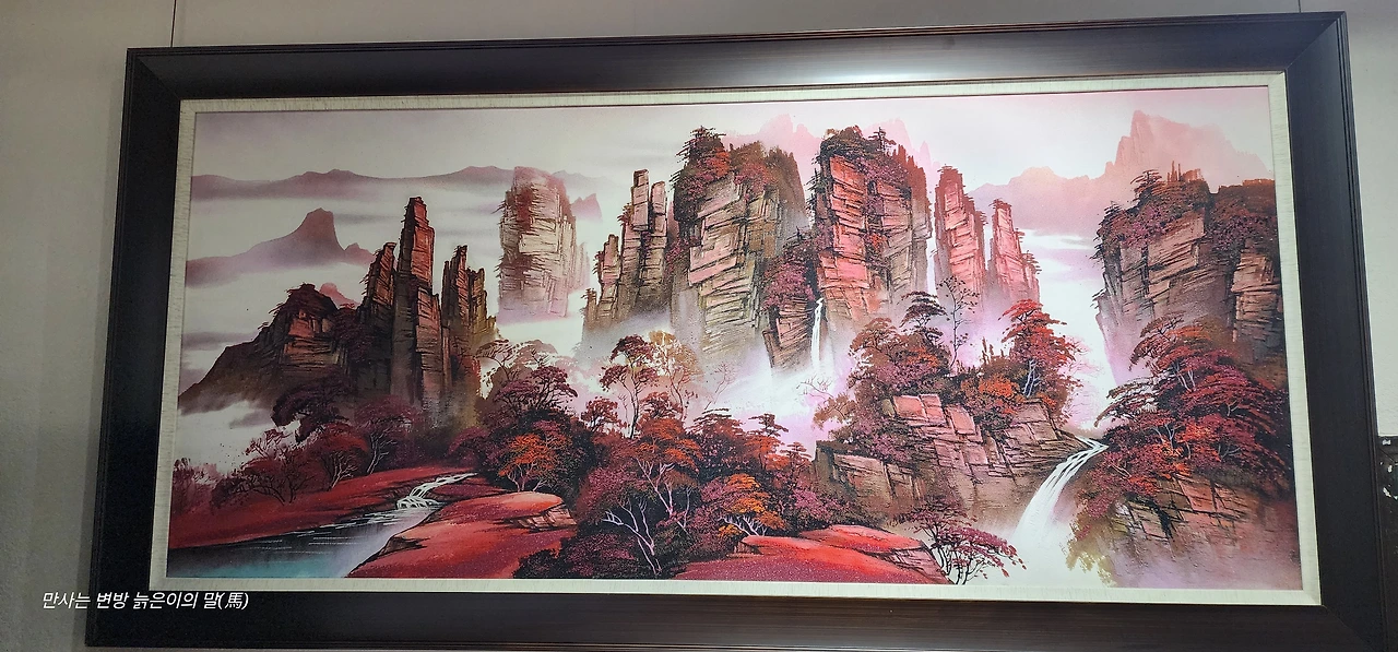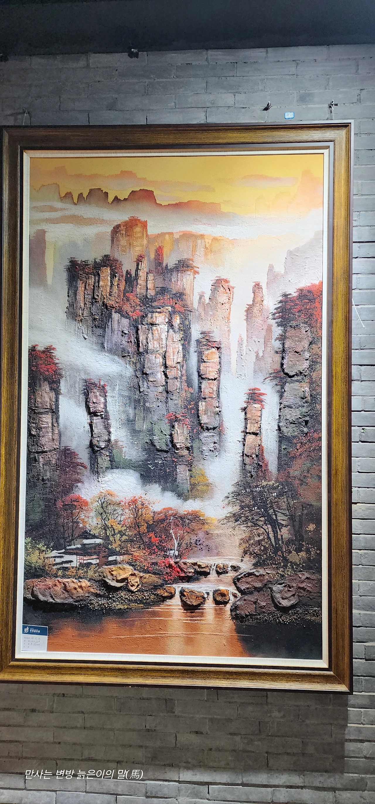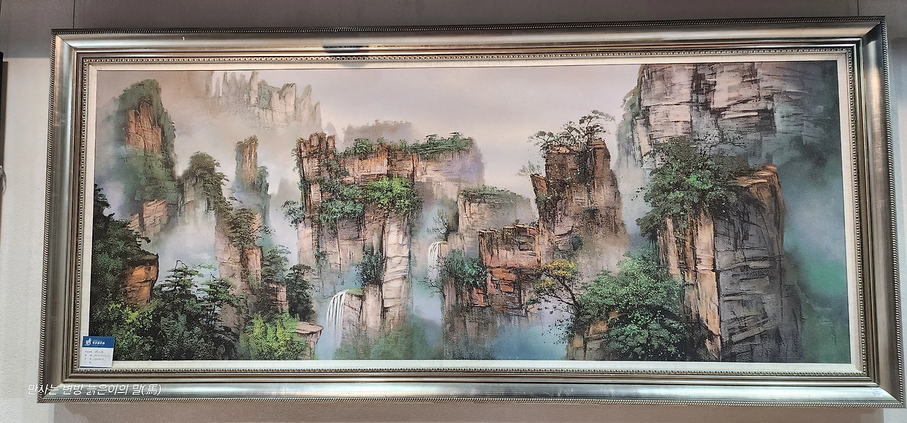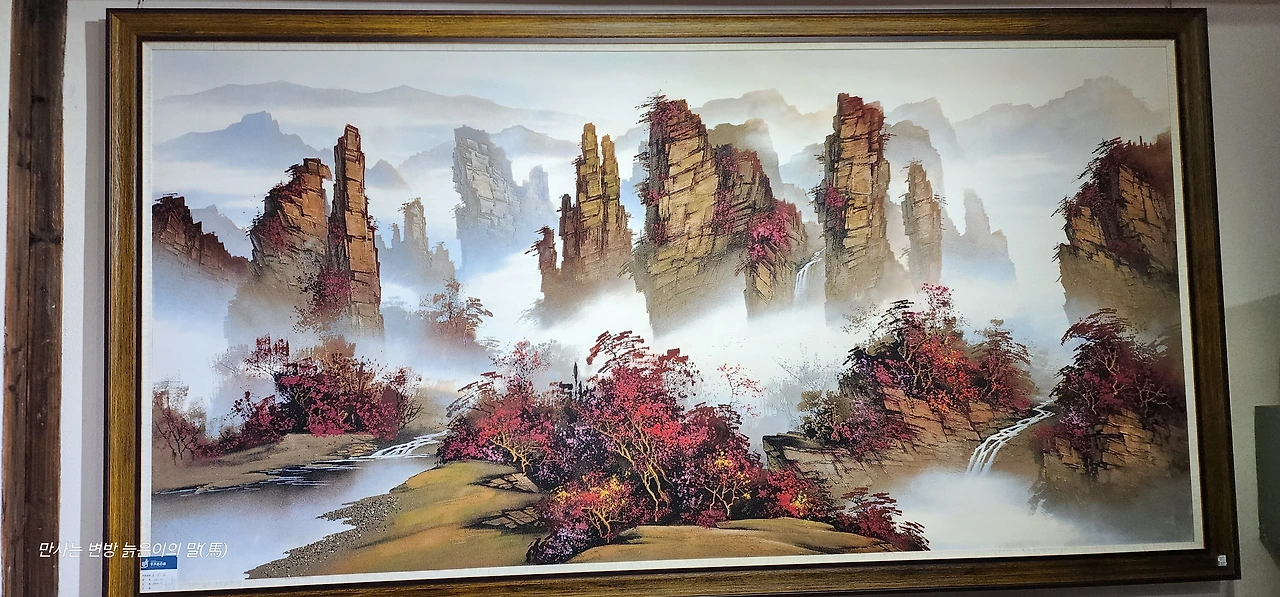 이 양반이 모래(沙)와 돌가루(石)를 이용하여 장가계의 아름다운 풍경을 그림으로 표현했다는데