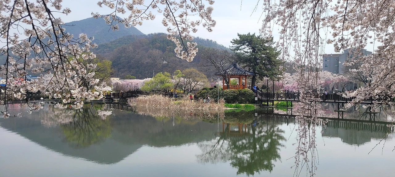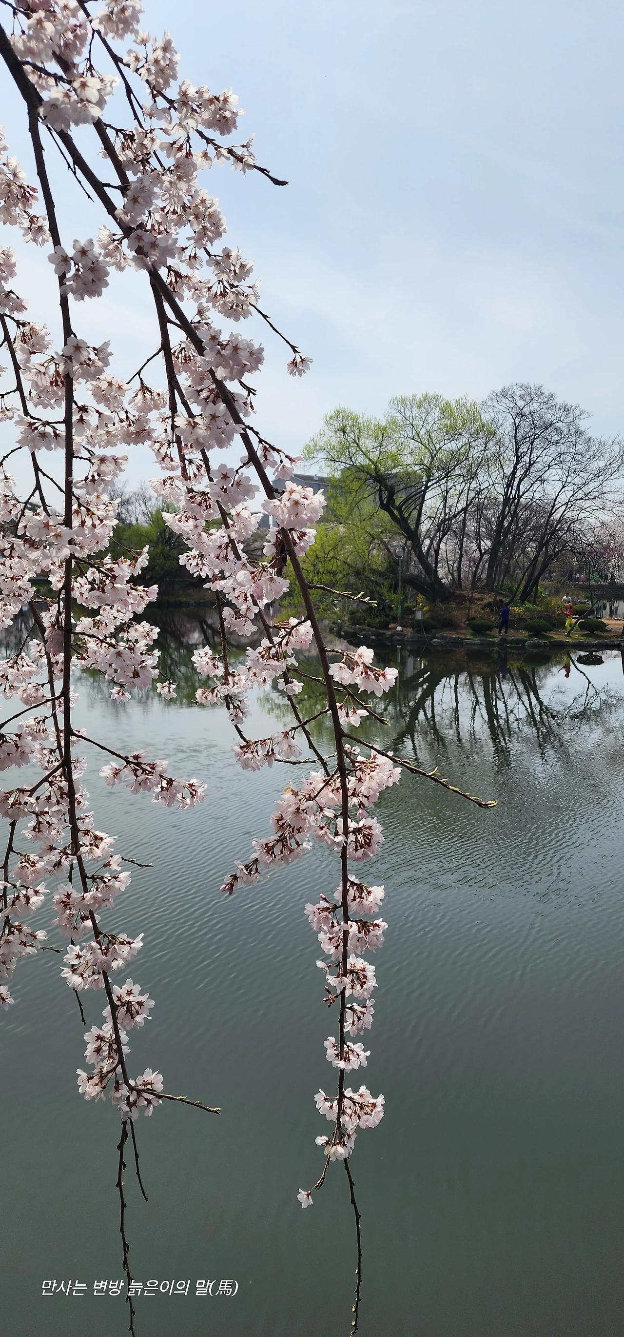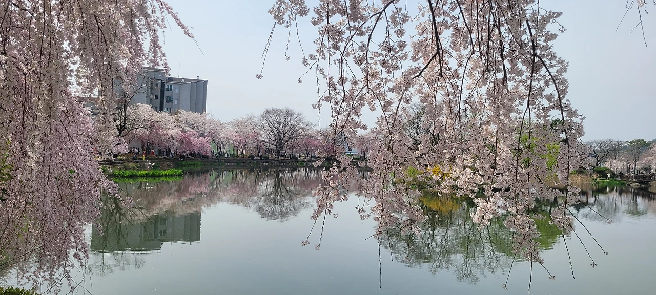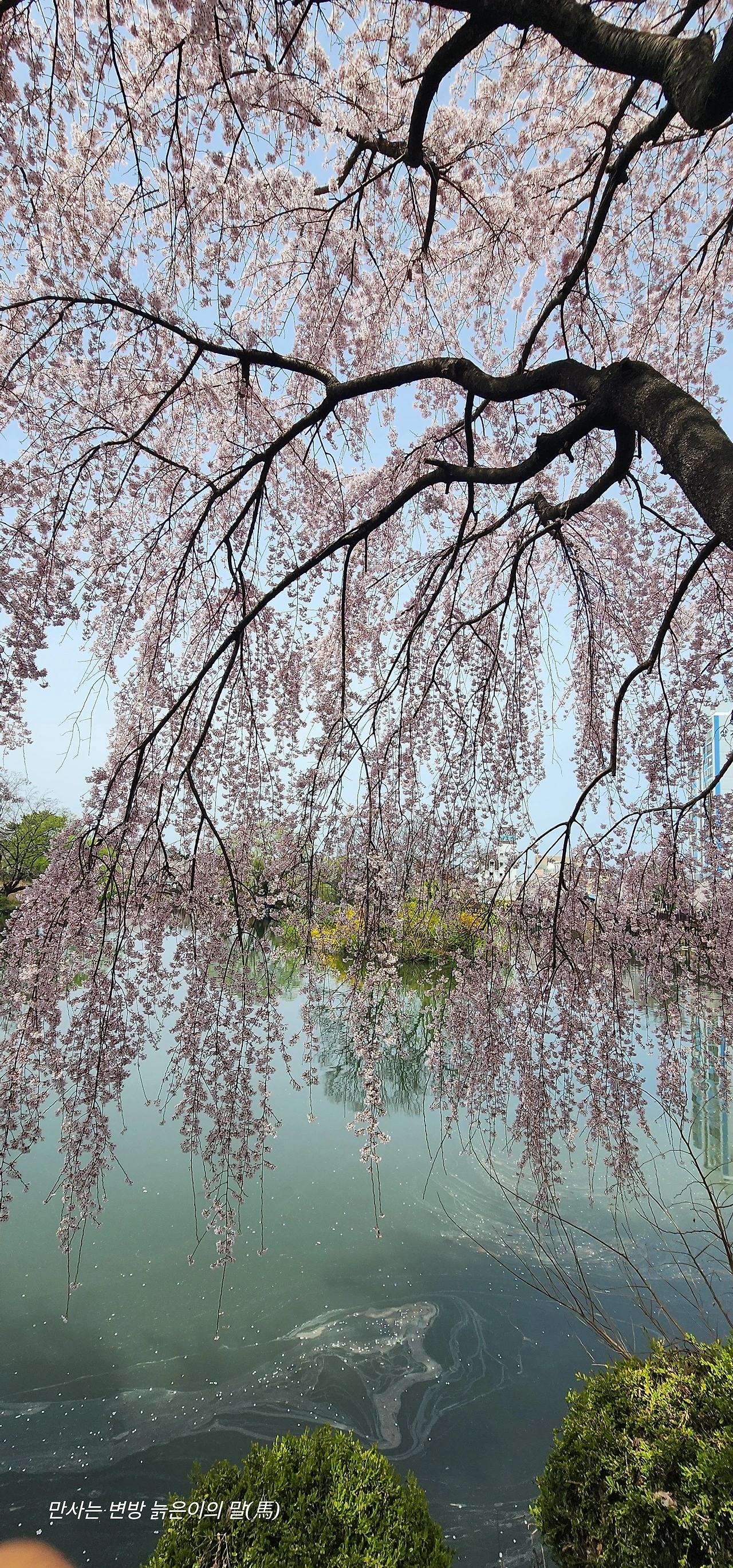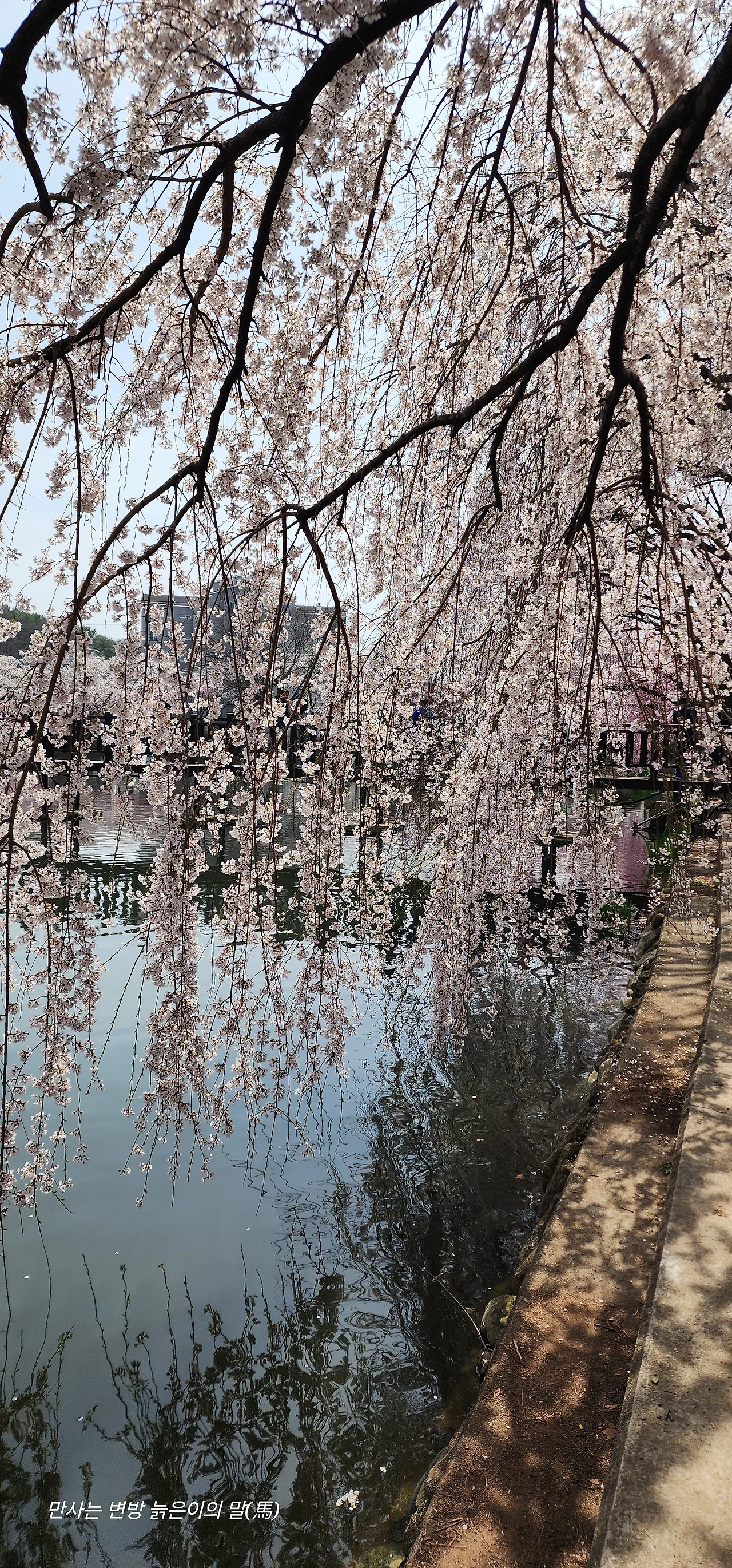 축축 늘어진 수양 벚꽃이 연못과의 조화로움이 사람의 시선을 끌기에 충분하더군요