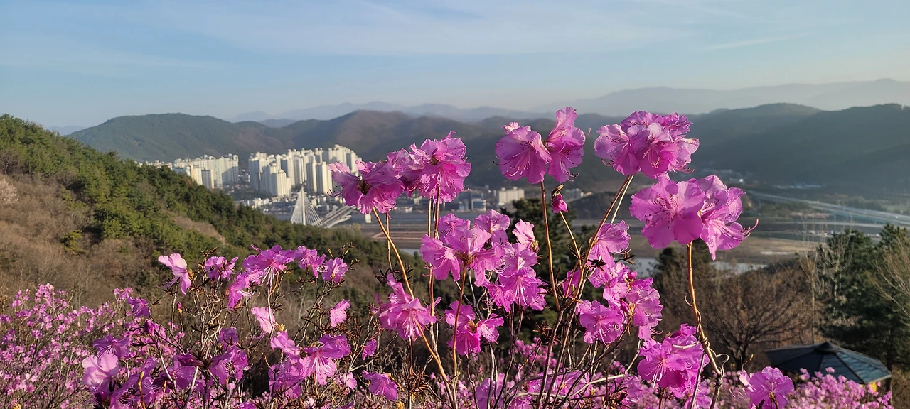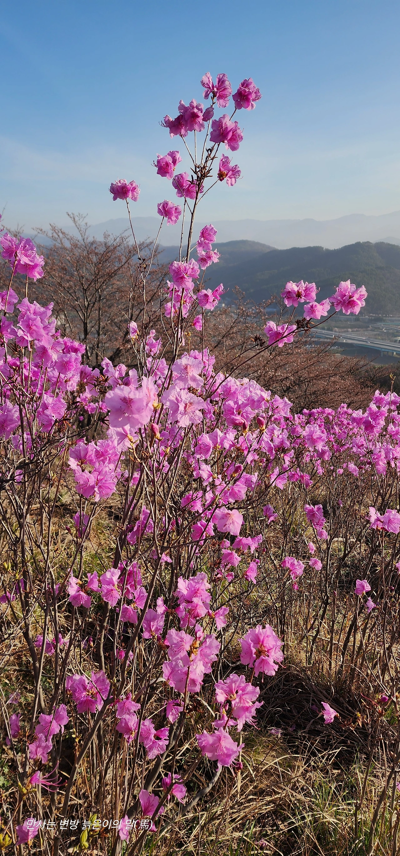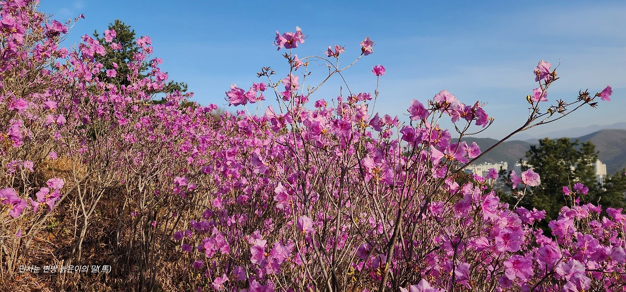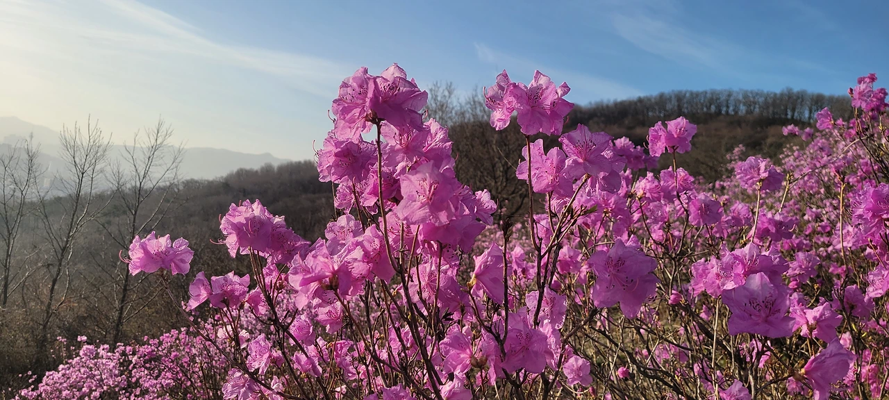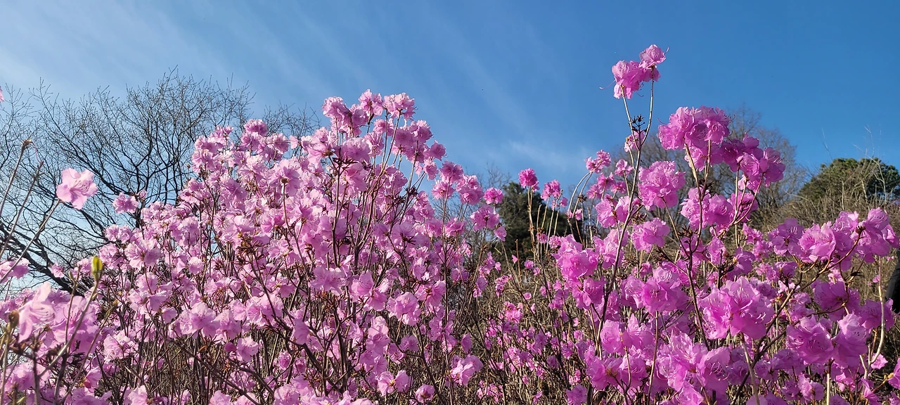 진달래나 영산홍이나 자연산은 아닐 것이고 꽃이 일찍 피는 품종을 골라서 식재한 게 아닐까(?)