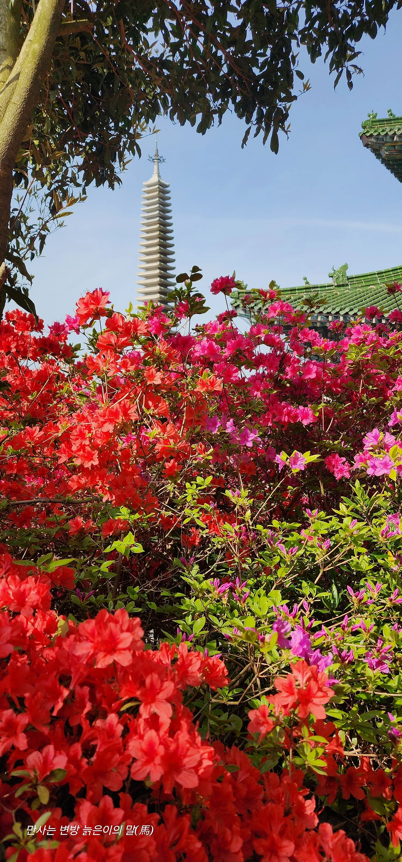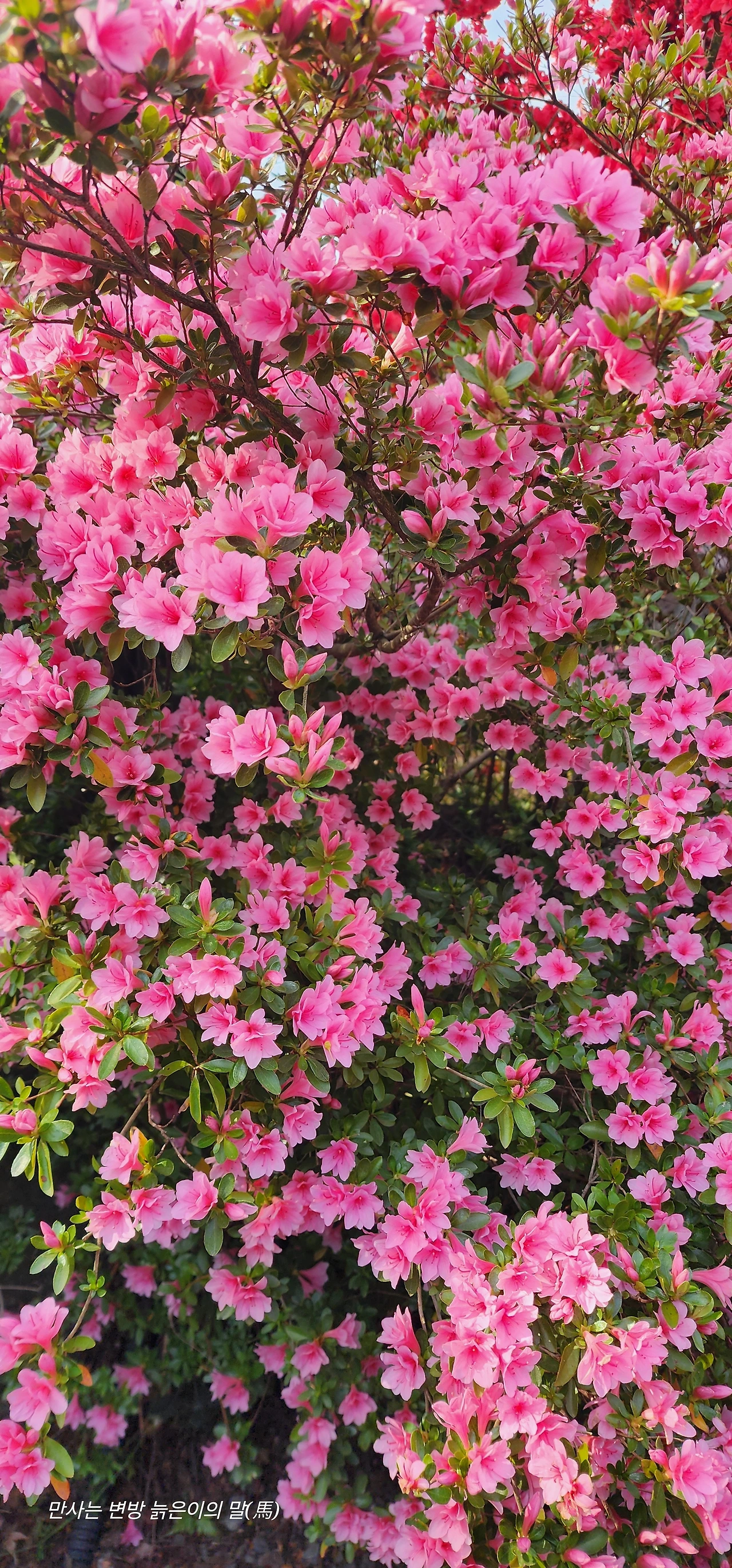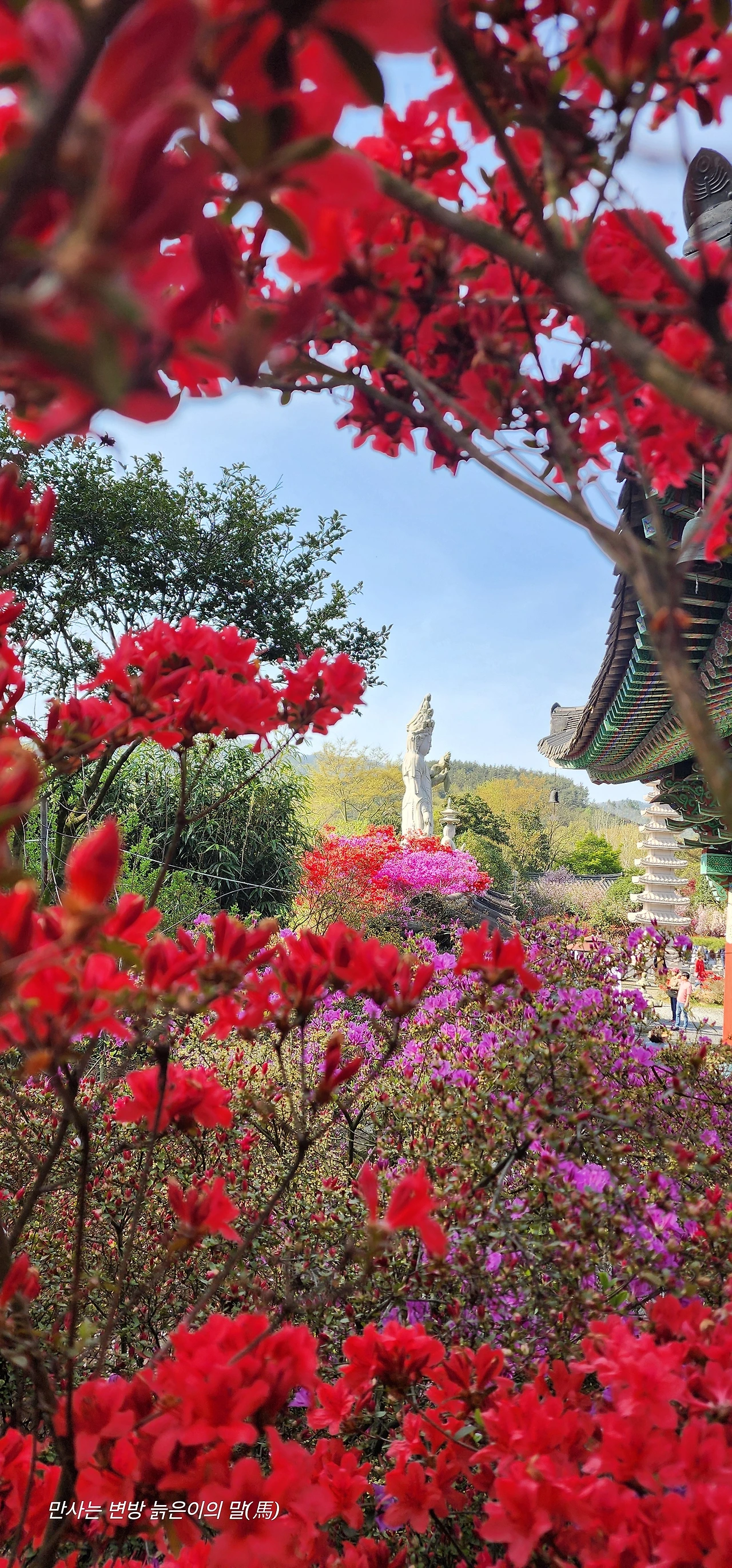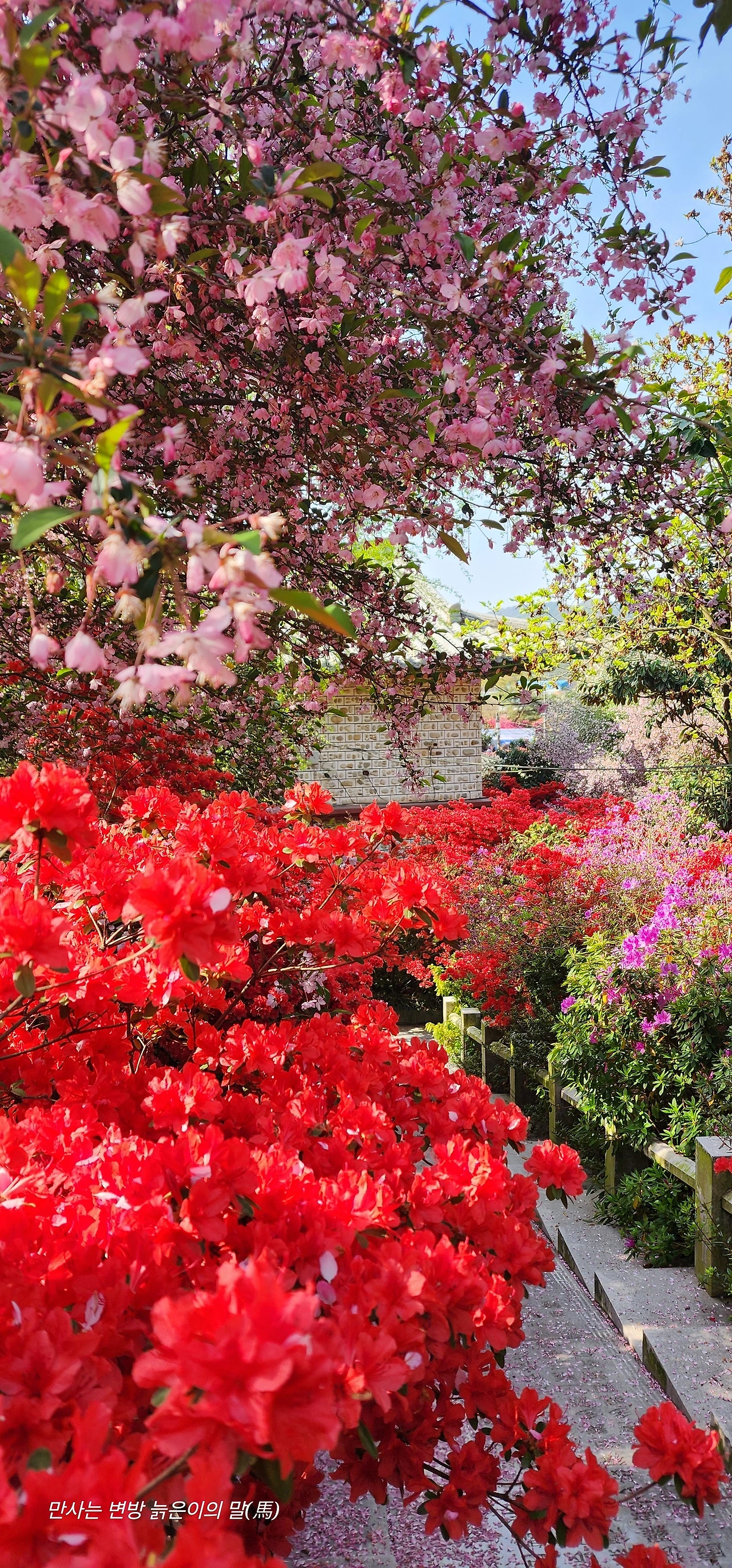 징그러울 정도로 남미륵사의 서부해당화와 철쭉이 화려하고 강렬하다는 뜻입니다
