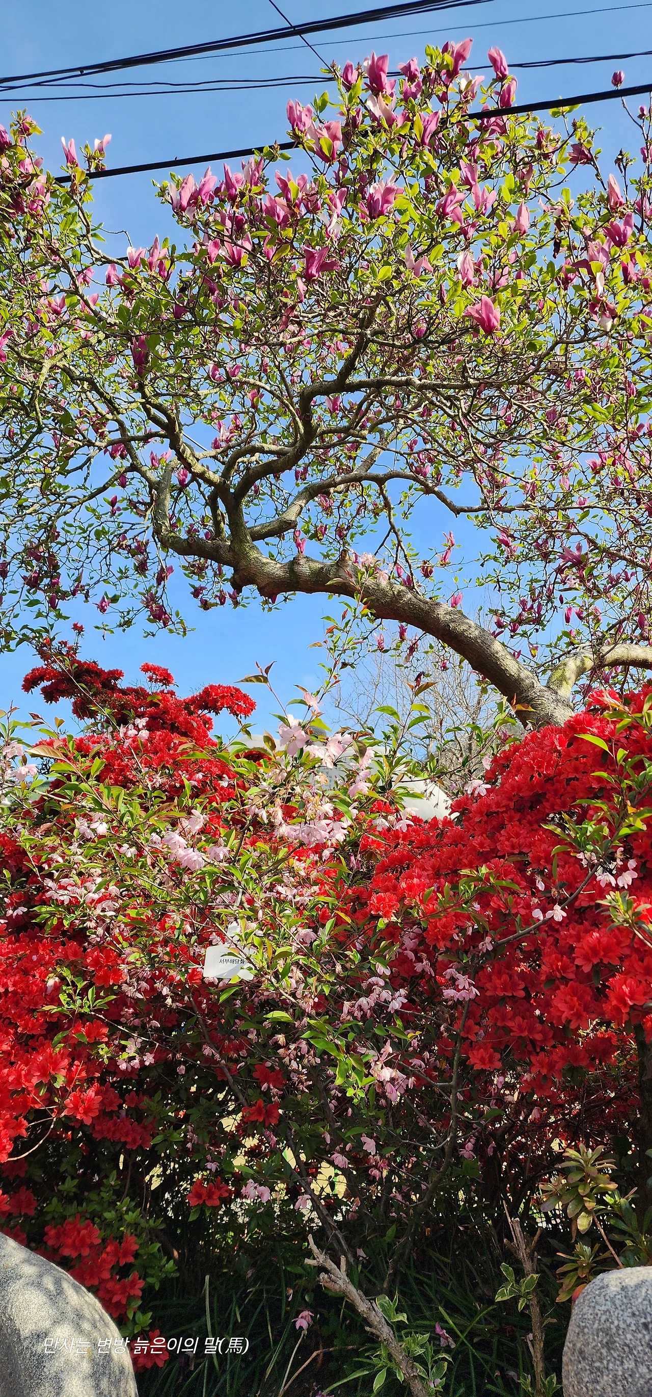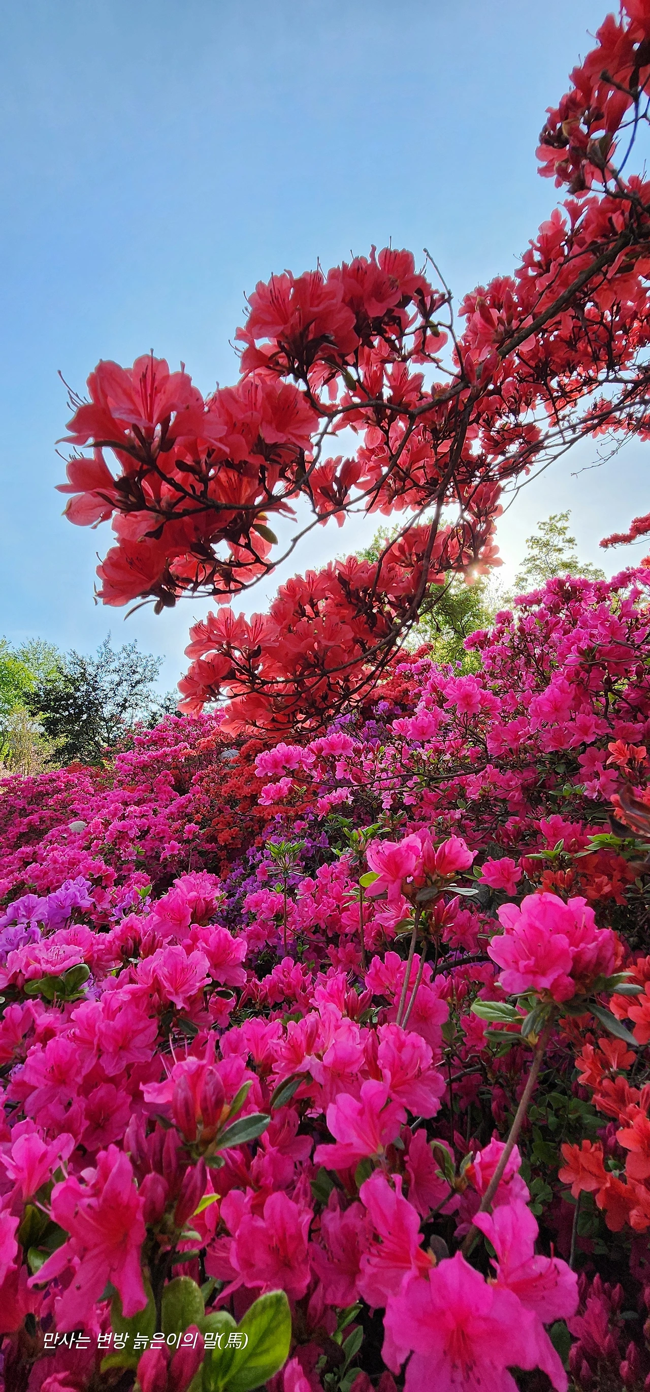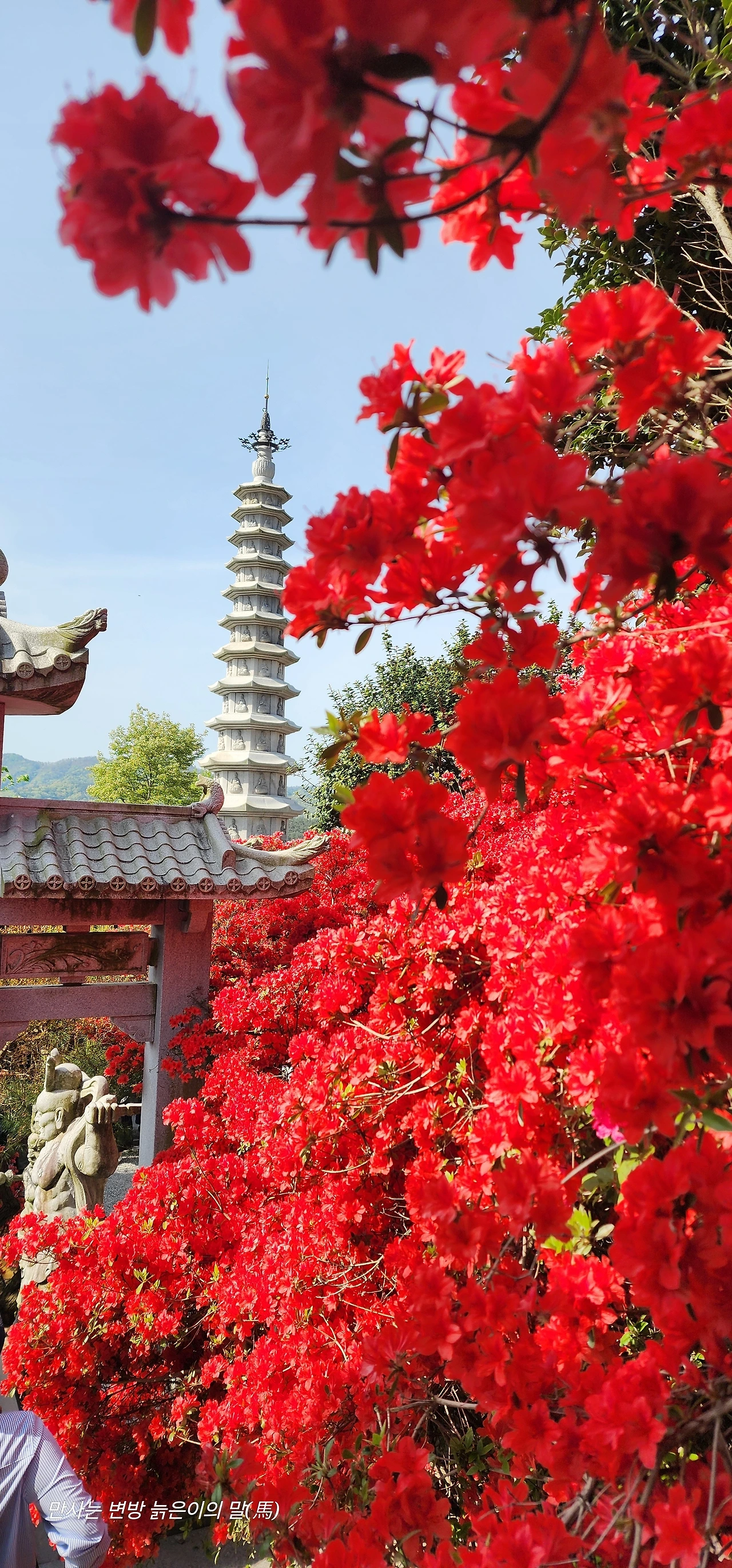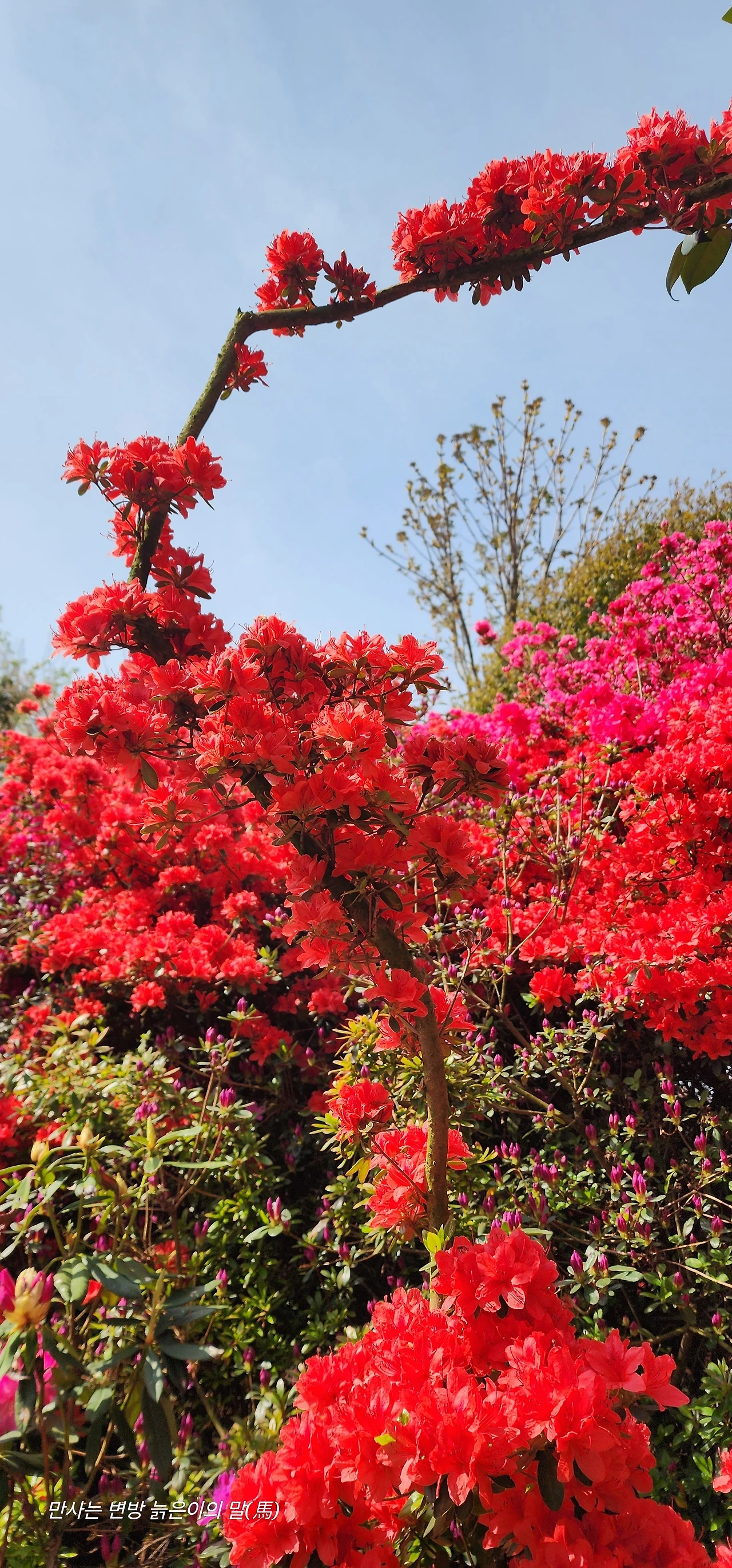 징그러울 정도로 남미륵사의 서부해당화와 철쭉이 화려하고 강렬하다는 뜻입니다