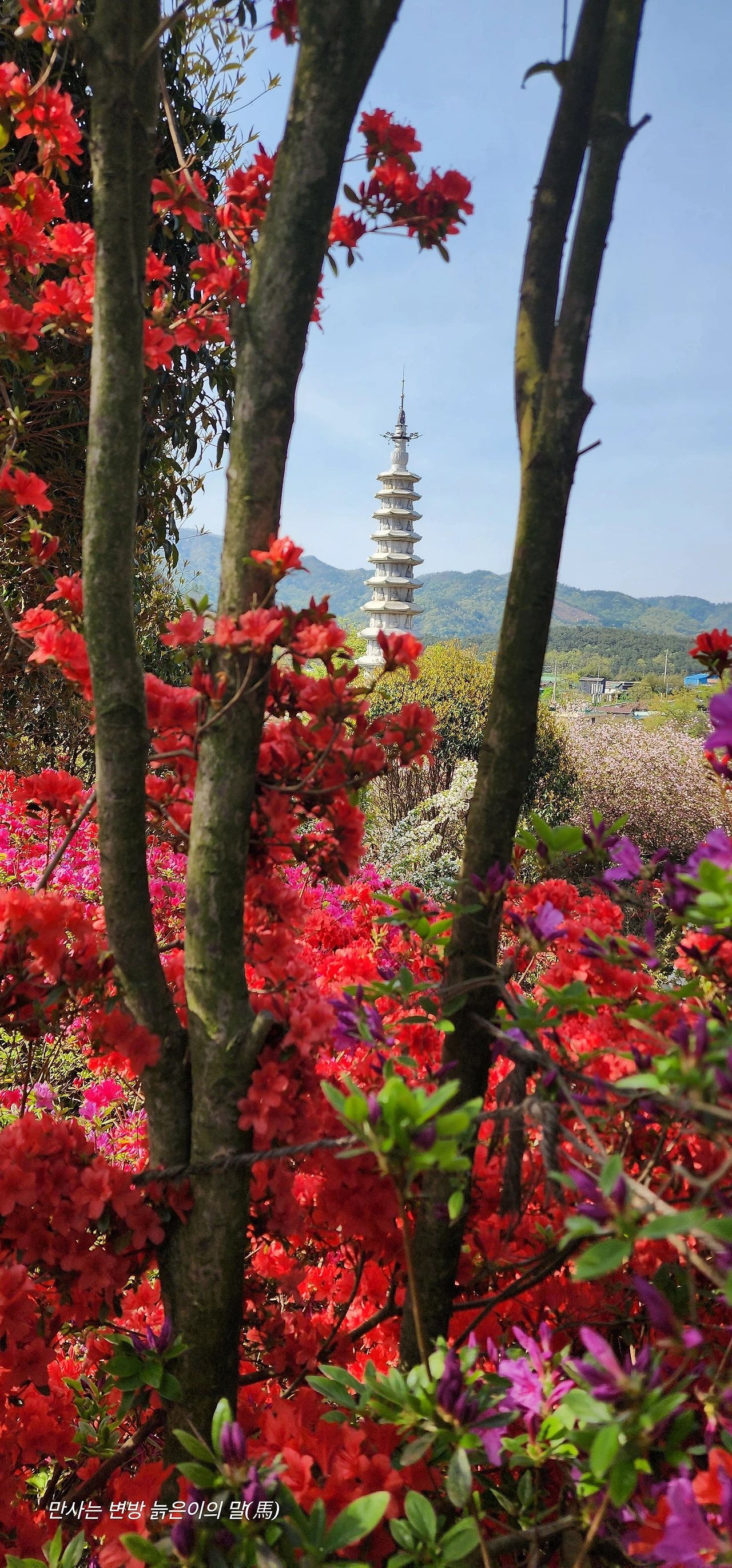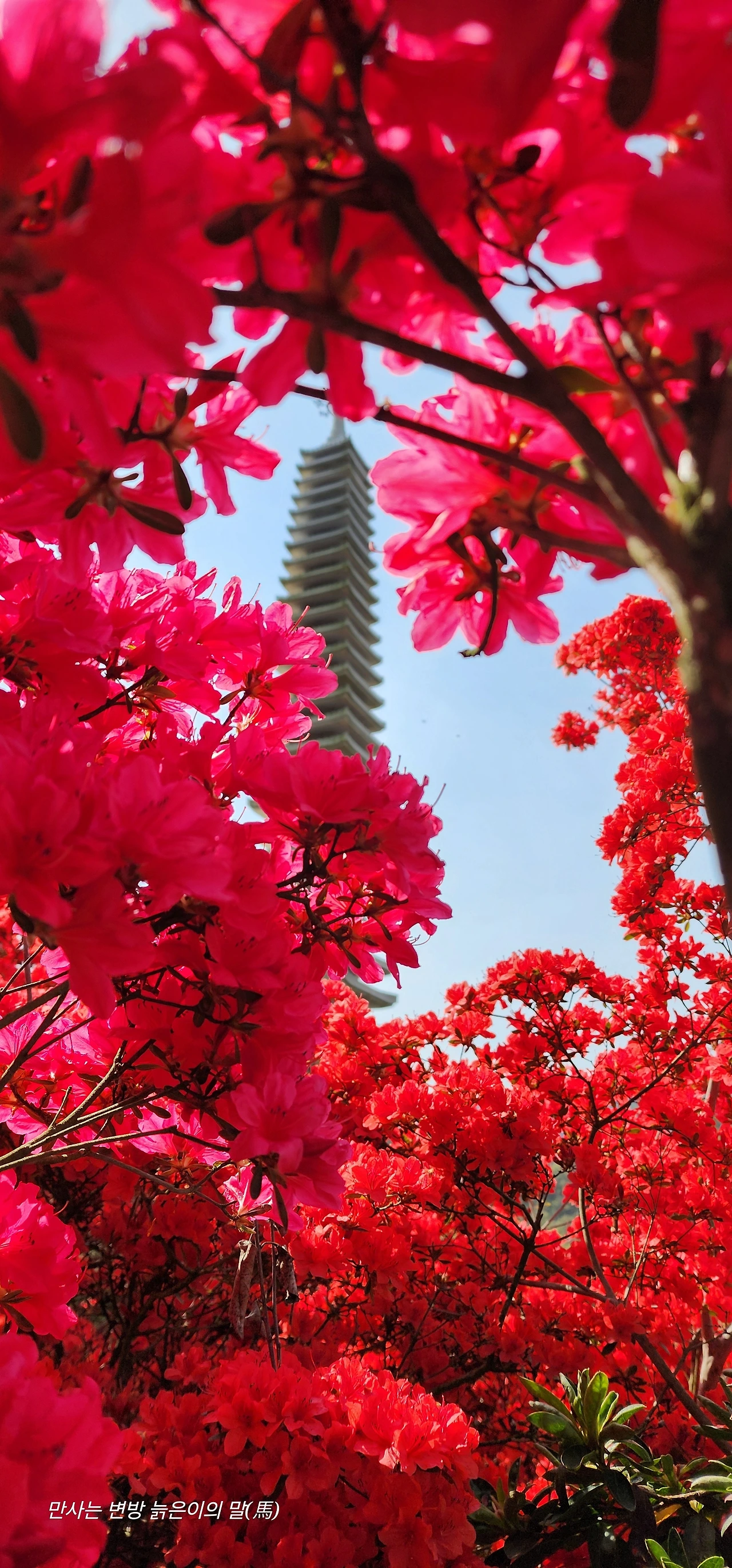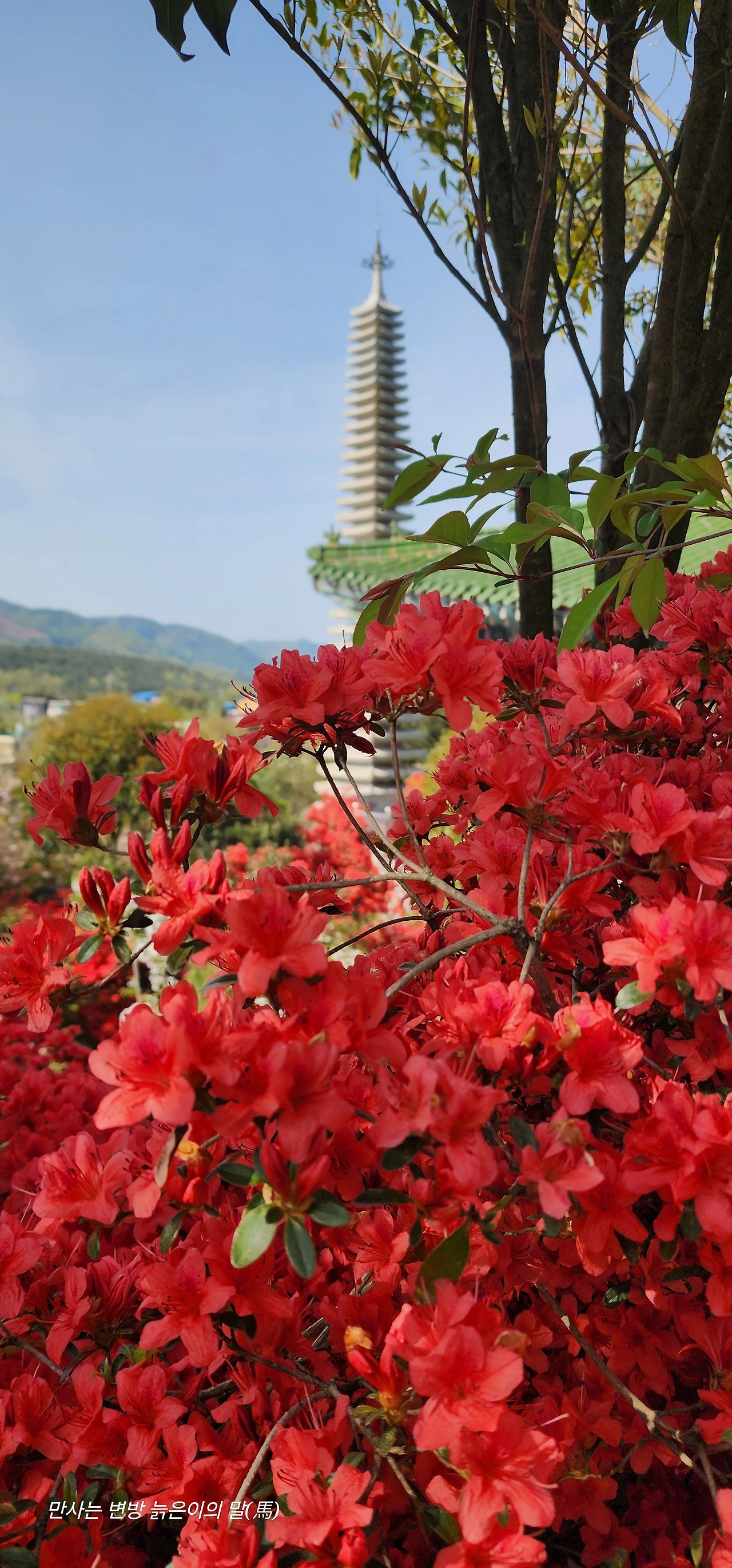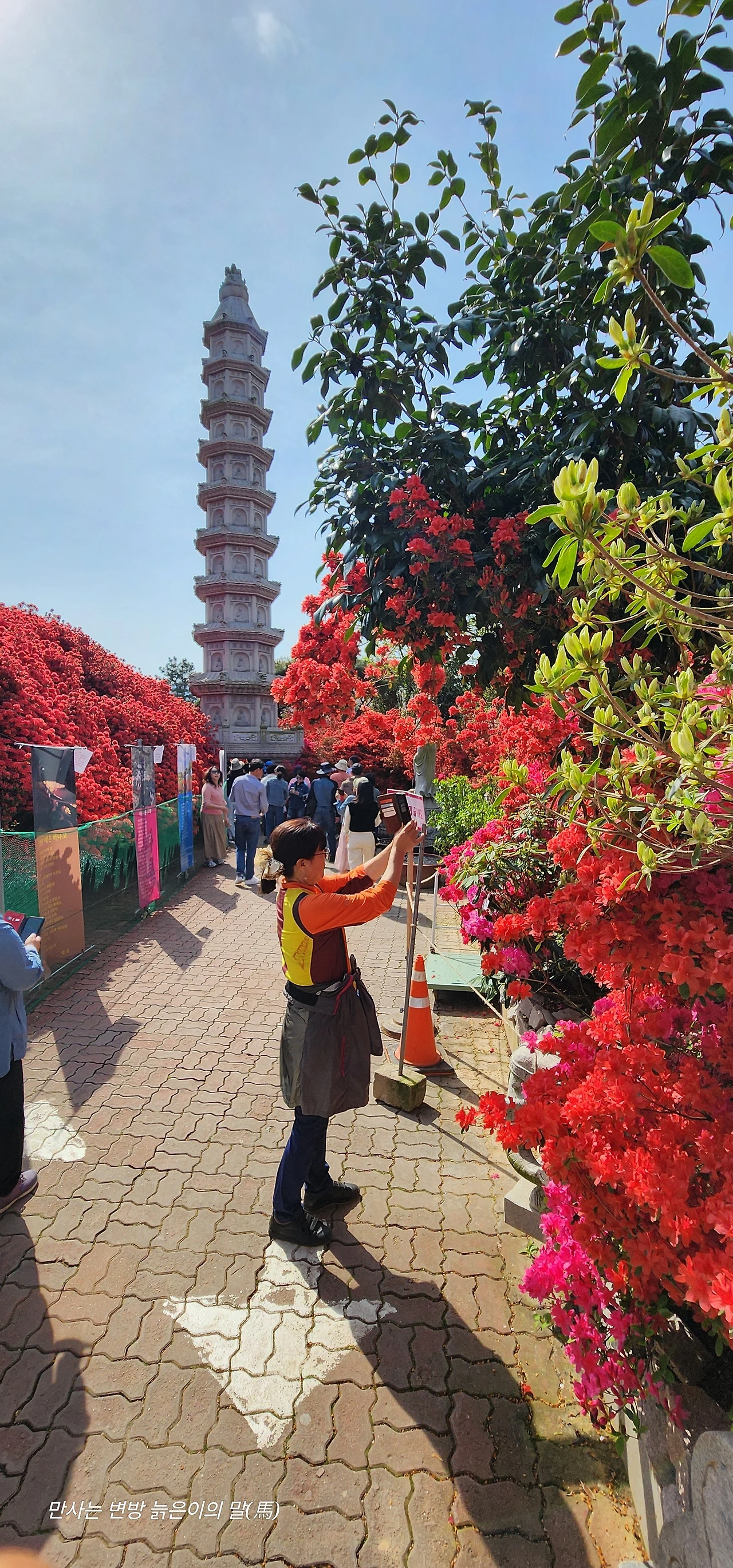 징그러울 정도로 남미륵사의 서부해당화와 철쭉이 화려하고 강렬하다는 뜻입니다