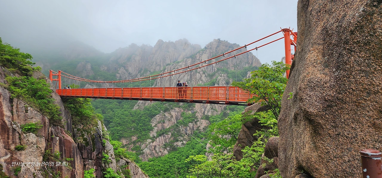 바람폭포를 지날 즈음 시야가 확보되는 게 뚜렷하여 그래도 구름다리는 건너보고 하산해야지 하면서 다시 꾸역꾸역 계단을 밟아 올라갔습니다