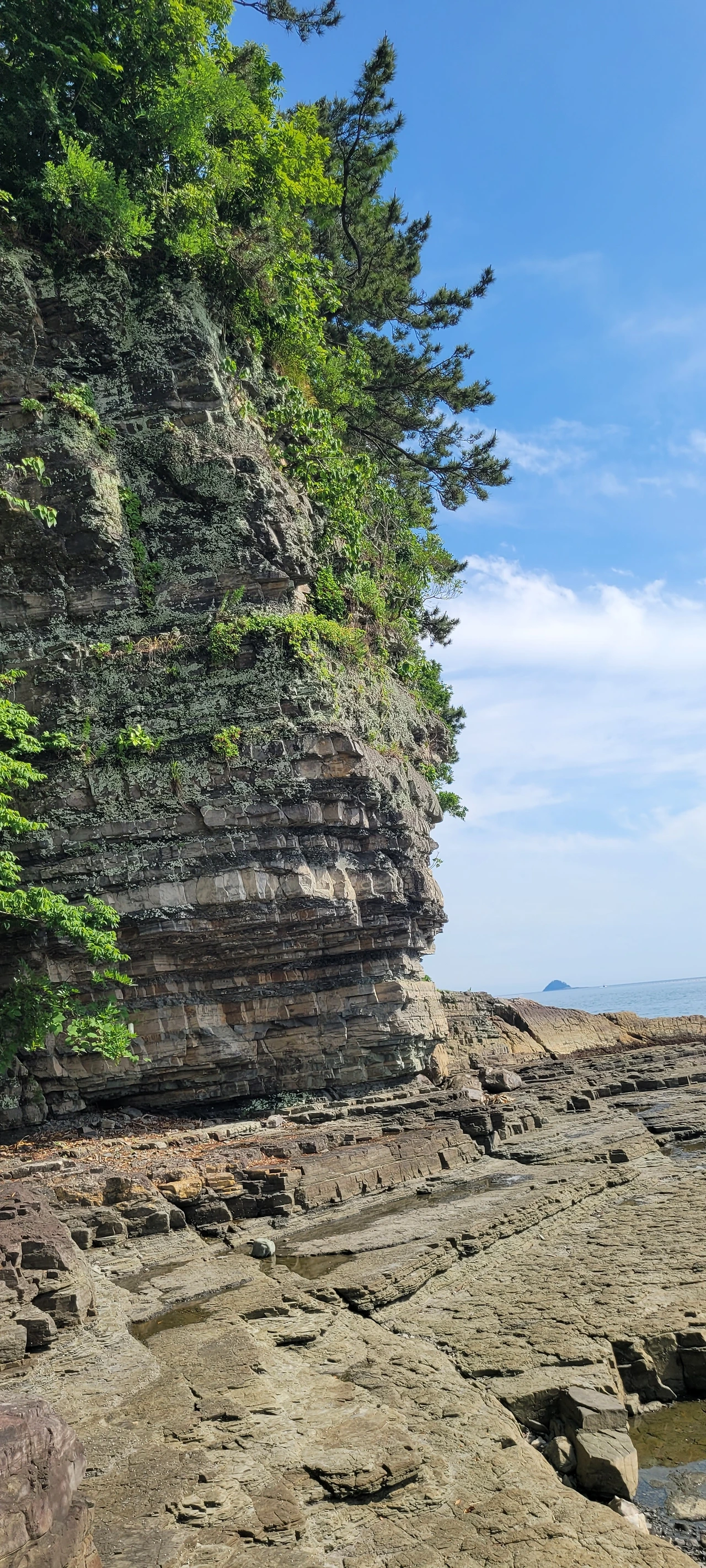 상족암도 남파랑길이 지나가는 길목이고 상족암에서 동쪽으로 바라보면 널따랗게 수직 절벽의 해식애가 있습니다