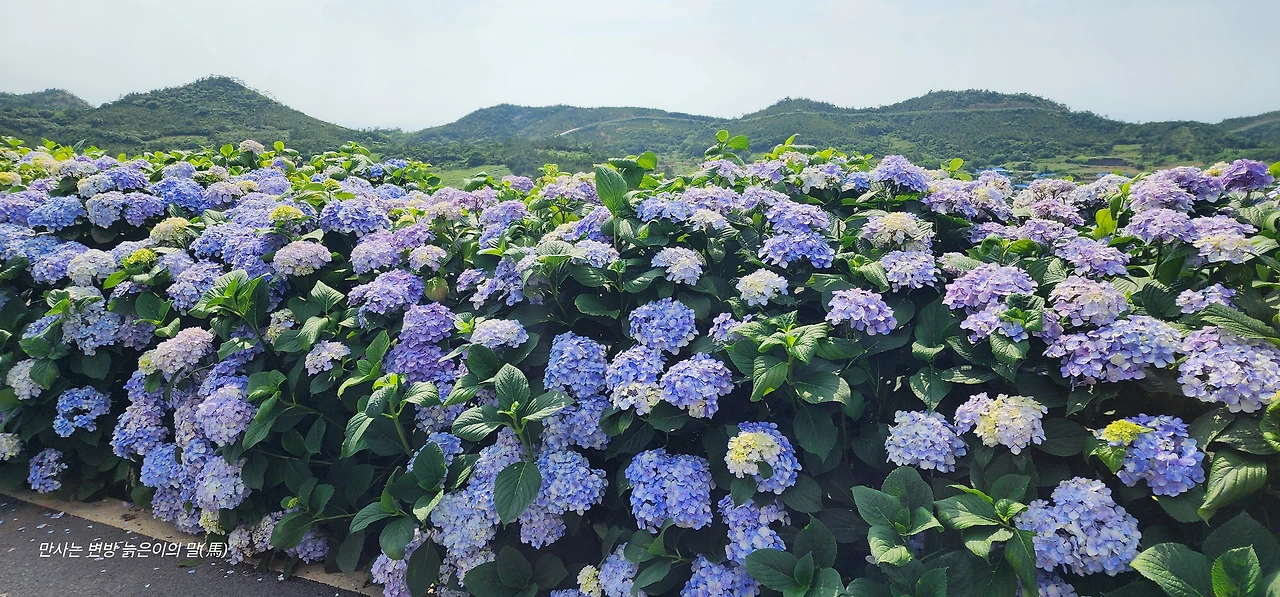 바다 가까이 또는 섬에 있는 수국이 더 화려하고 주변 풍광도 좋아 보입니다