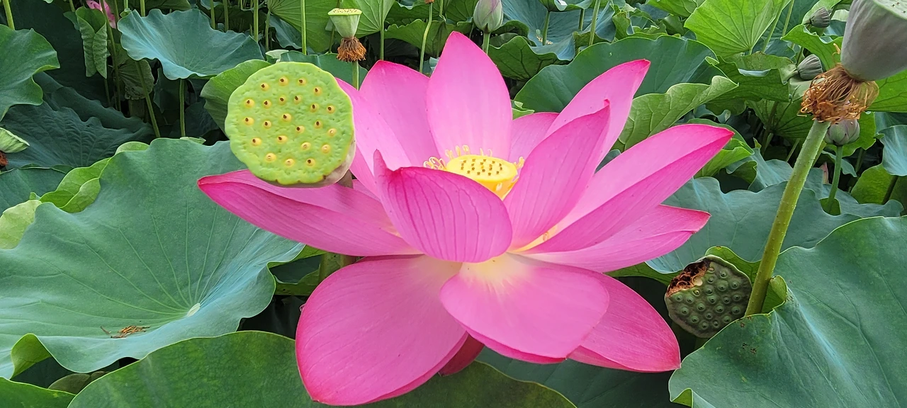 싱그럽게 피고 있는 연꽃을 오롯이 향유했으며