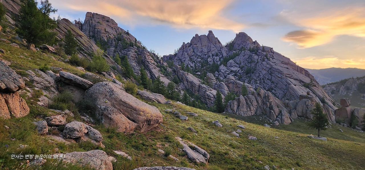 해뜨기 전에 기상했더니 게르의 뒷산이 아주 멋지더군요