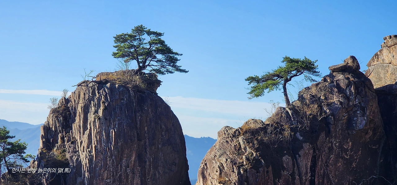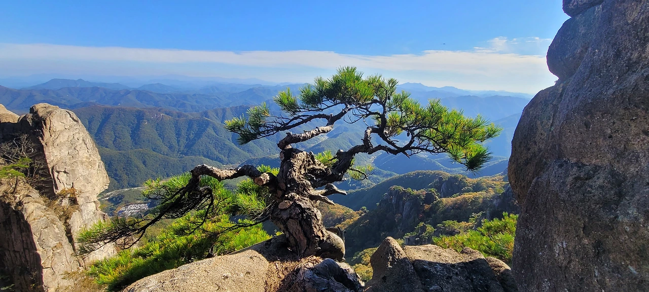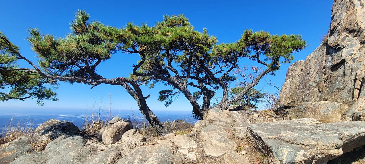 바위 틈새에서 삶을 이어가는 소나무는 공통점이 있습니다