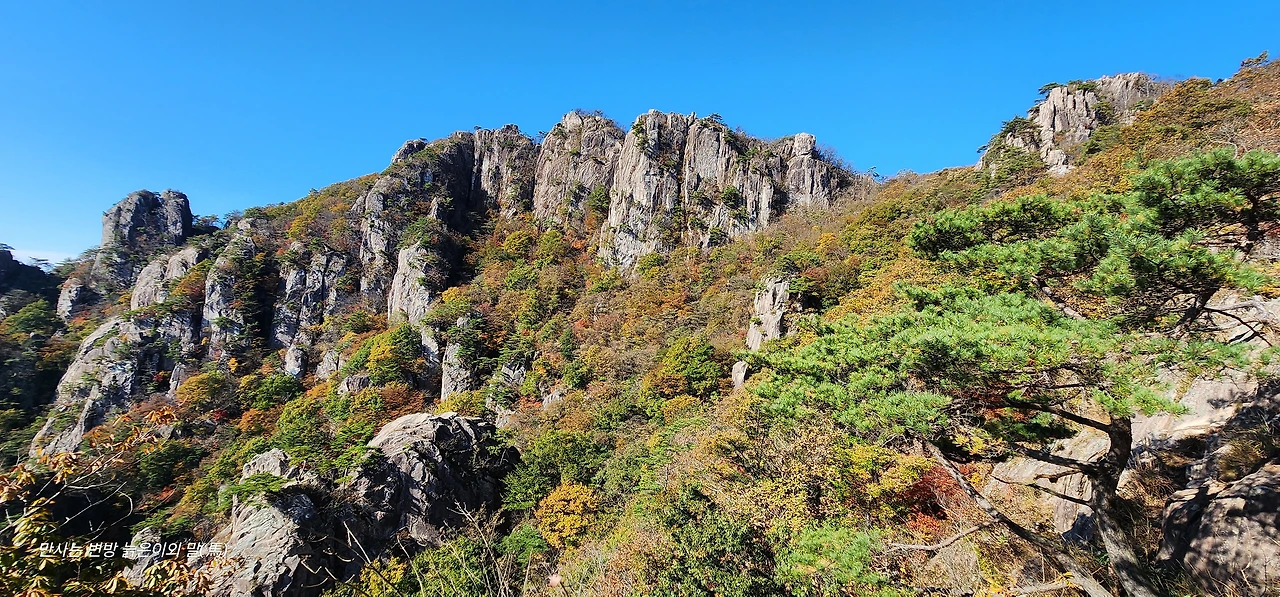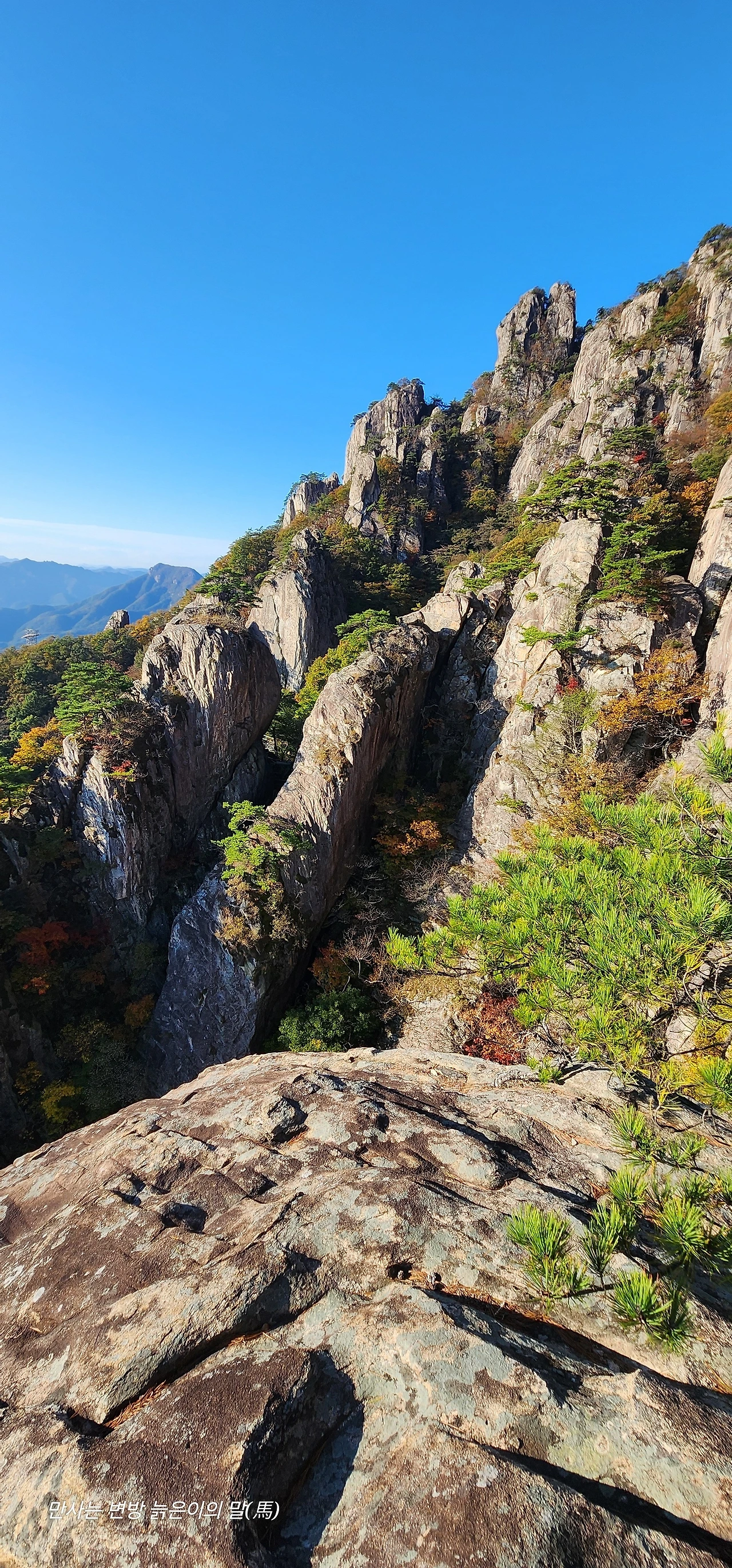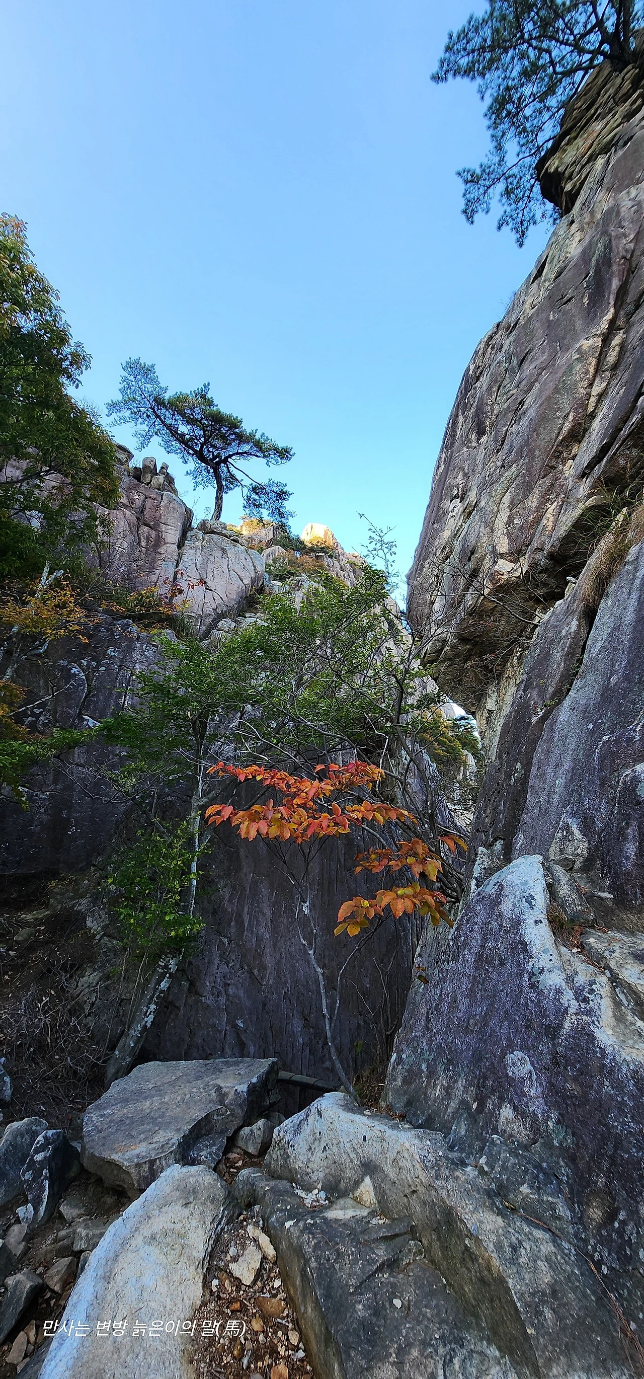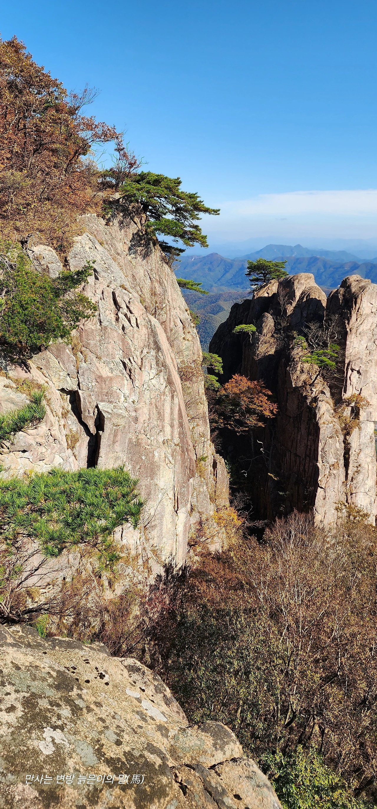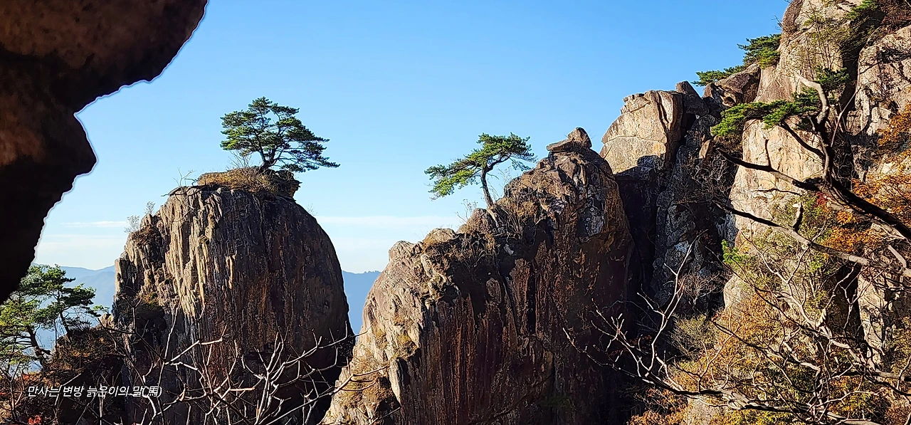 처음 보았을 때 처럼의 초절정 환희는 아니었지만 바위와 소나무와 약간의 단풍이 어우러진 삼위일체의 풍경은 길손의 혼을 빼놓기에 충분했습니다