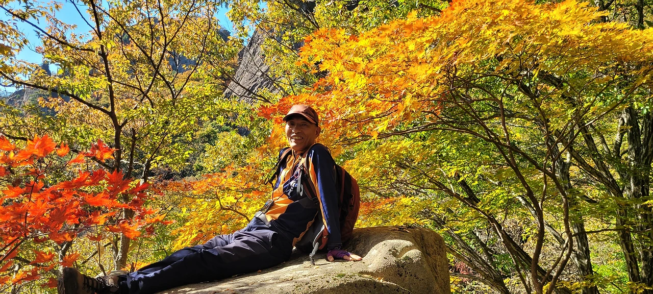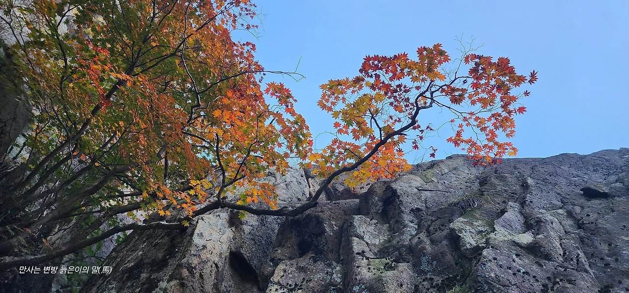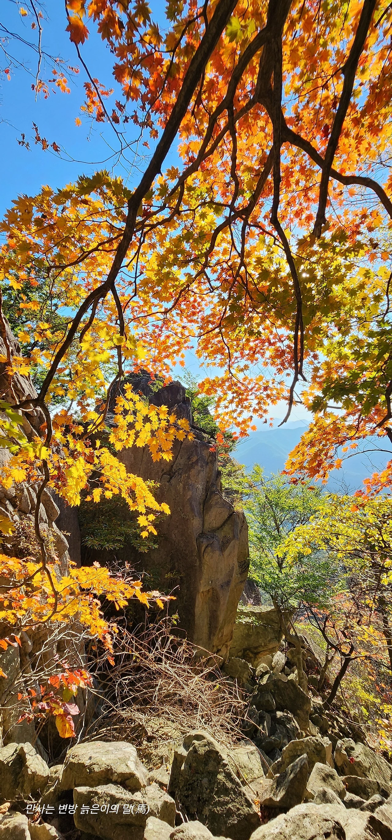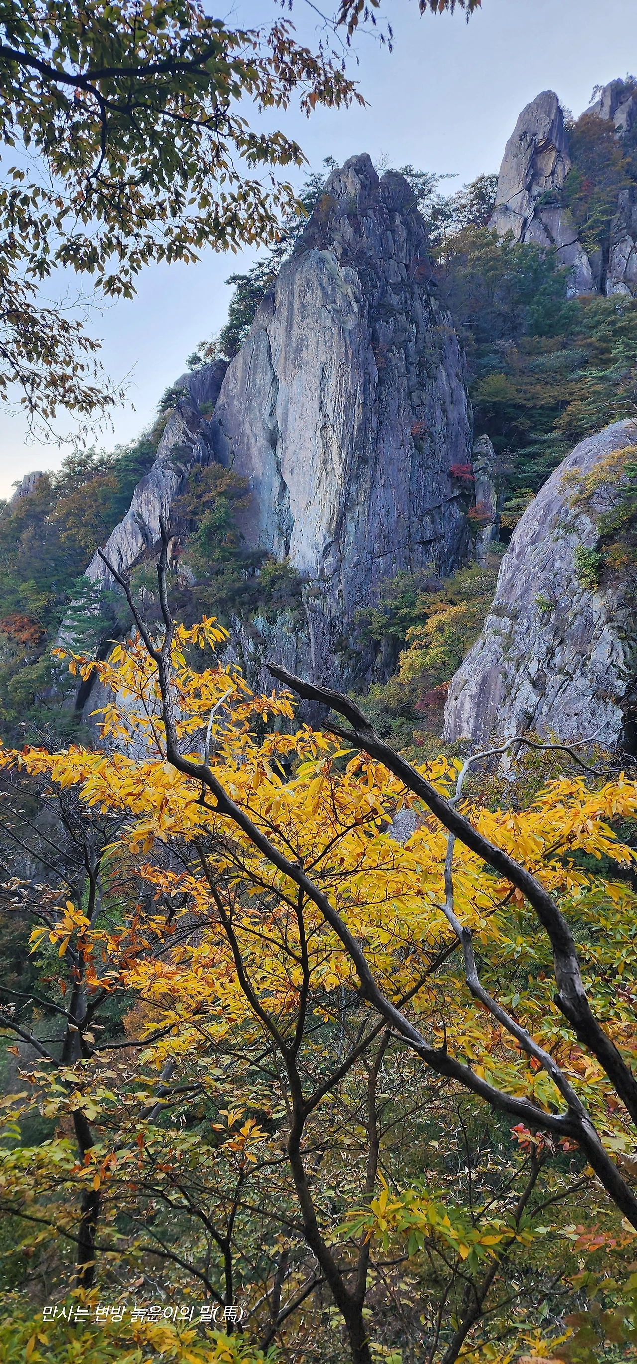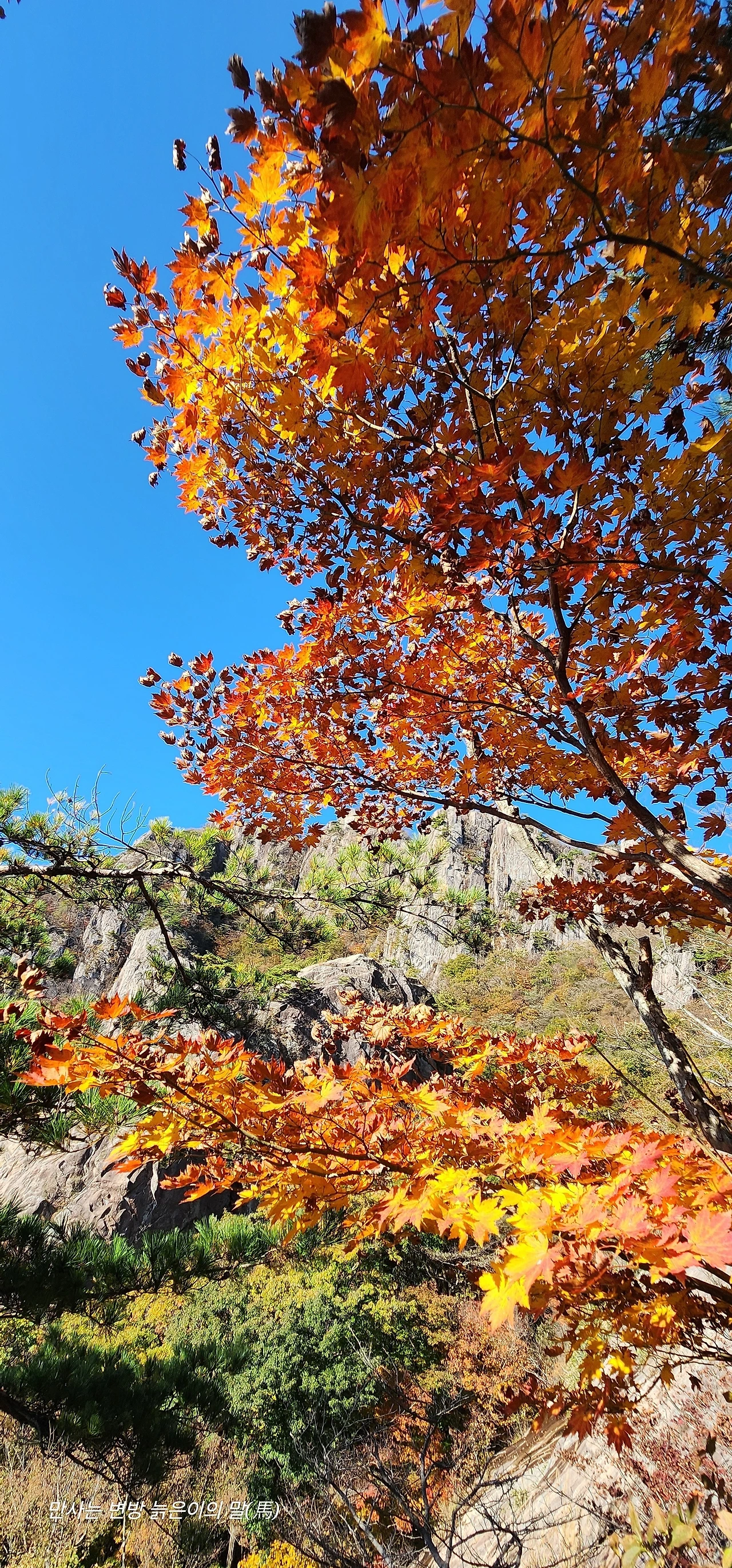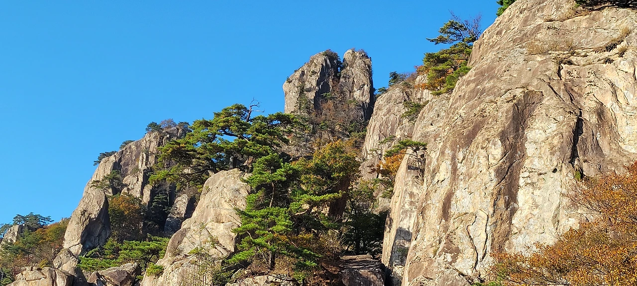 처음 보았을 때 처럼의 초절정 환희는 아니었지만 바위와 소나무와 약간의 단풍이 어우러진 삼위일체의 풍경은 길손의 혼을 빼놓기에 충분했습니다