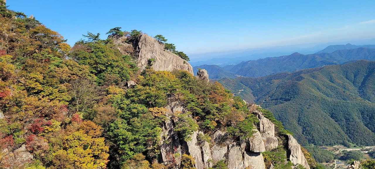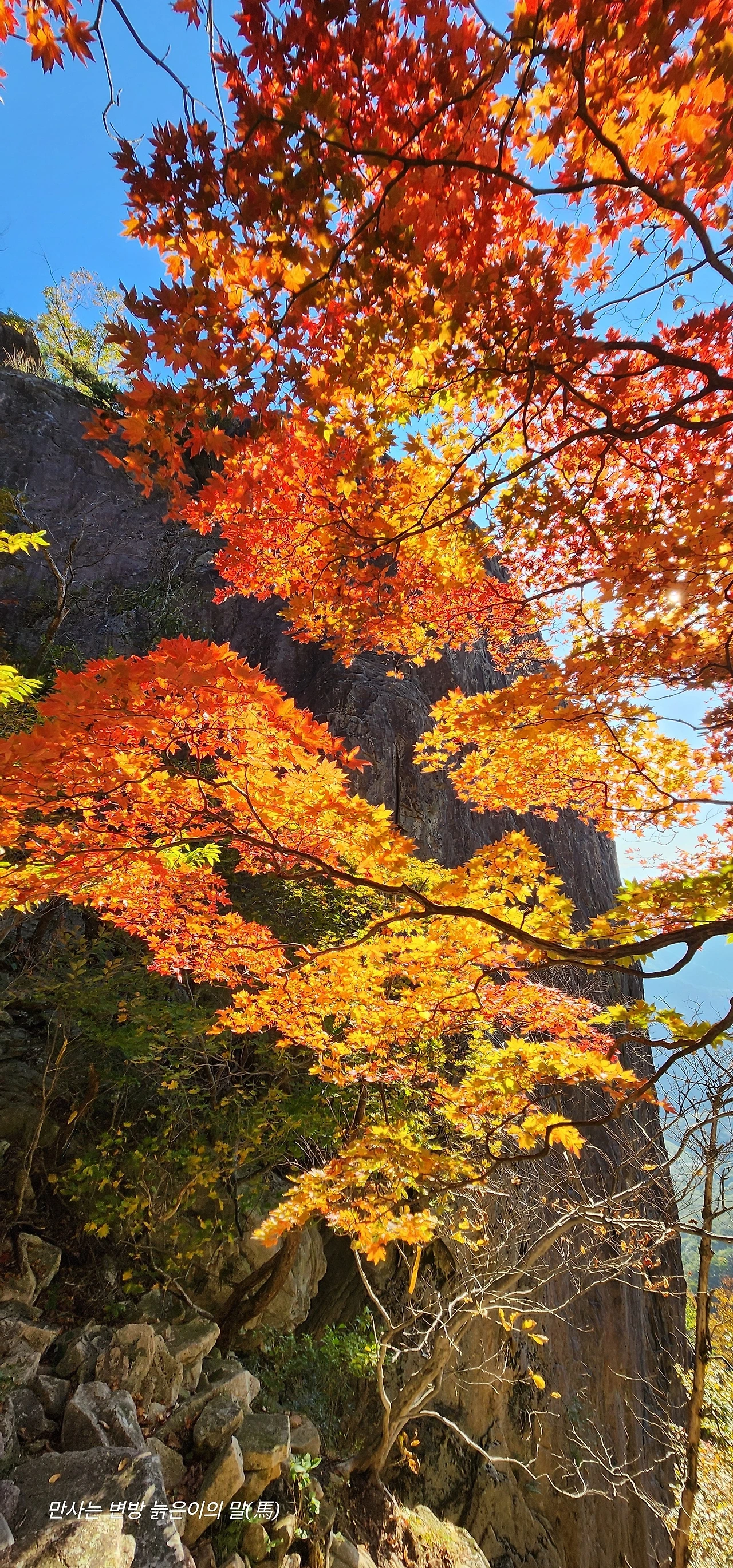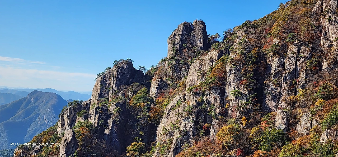 수직 절벽에 하나씩 박혀 있는 단풍은 대둔산이 가지고 있는 훌륭한 자산입니다