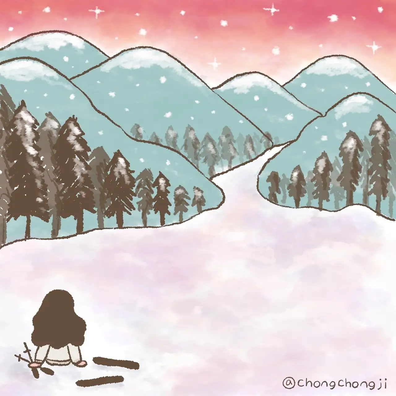 그래서 스키장 끄트머리에 털썩 앉아버렸어요.