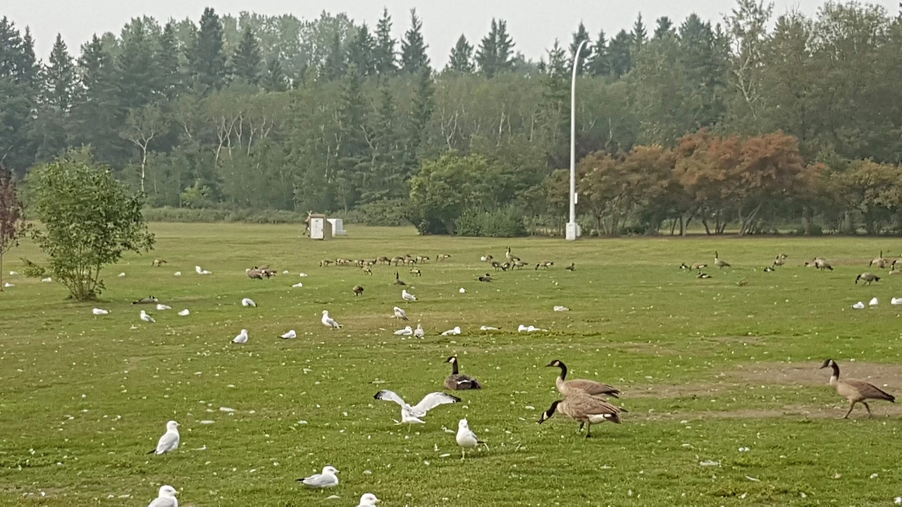 해마다 봄에 이곳으로 와서 사는 기러기들이 많다. 그들은 4월 중순쯤 오기 시작하여 좋아하는 장소를 정해 생활을 하며 알을 부화시켜 키운다. 새끼들이 어느 정도 자라서 먼길을 떠날 수 있게 되면 추운 이곳을 떠나 따뜻한 곳으로 간다. 한 번씩 이동하는 숫자는 엄청나게 많다. 지난가을 그들이 떠나기 전에 모이는 곳을 지나게 되었다. 이곳에 서식하던 기러기들이 모여서 떠나는 일정을 정하는 모습이 정말 장관이었다. 강가에 분대별로 모여서 지시를 하고 명령을 기다리고 정찰하는 기러기들은 하늘을 빙빙 날아다니며 신호를 주는 모습이 군대 이상 같았다. 질서가 있어 순서에 따라 모이고 흩어지더니 떠나기 시작하며 날갯짓을 하는데 정말 완벽하다.