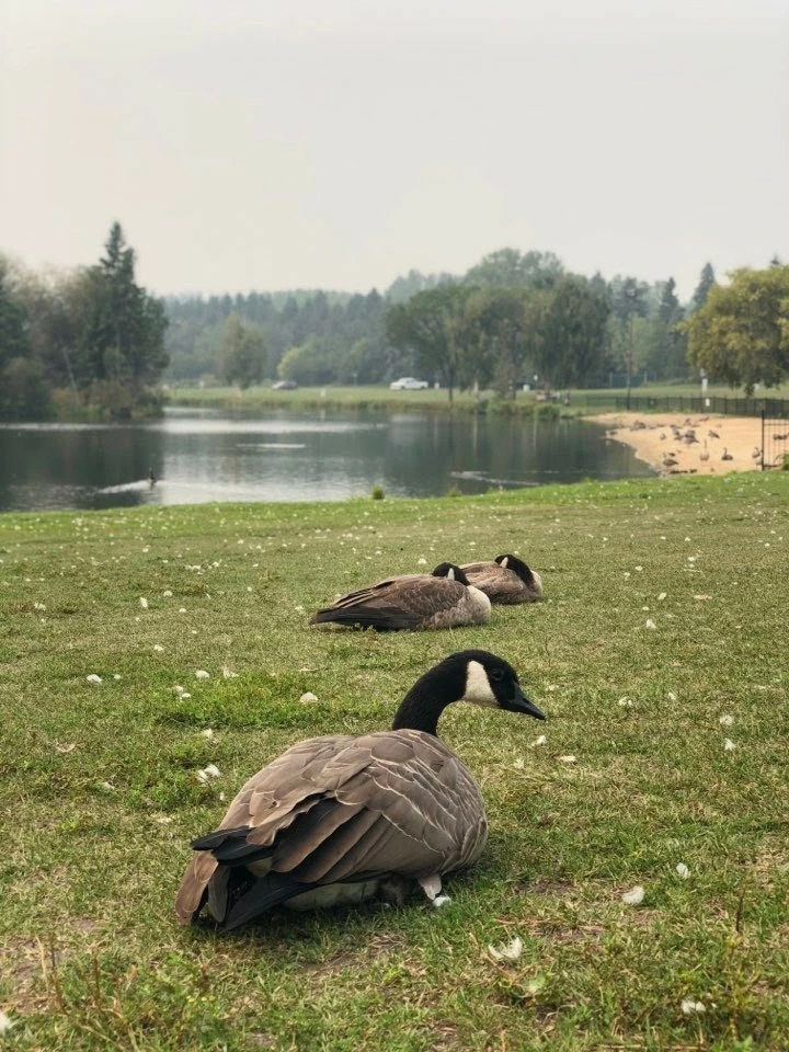 그들은 한적한 곳에서 살아가기도 하고 여럿이 모여있는 곳에서 살기도 한다. 여름에는 그들이 주로 많이 사는 공원에 있는 호숫가를 그들이 거의 점령했다고 해도 과언이 아니다. 그들의 변으로 잔디가 다 망가지고 너무 많아서 기러기 공원이 되었다. 호숫가에서 헤엄을 치고 떼로 몰려다니고 사람들을 무서워하지 않는다. 몇 해 전에는 길거리에서 기러기 가족이 생활을 하기도 했다. 교통이 불편하기도 했지만 사람들이 그들을 귀엽게 봐주었던 기억이 난다. 어떤 성질 나쁜 기러기는 지나가는 사람을 쪼기도 하고 공격도 하는 영상도 있지만 대체로 자연에서 편안한 삶을 살다 간다.