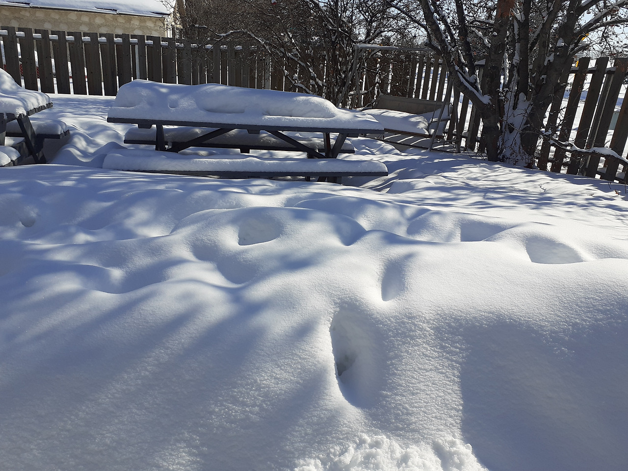 오늘 아침 기온이 영하 17도 체감온도 21도다. 3월 초순의 날씨로는 참으로 추운 날씨다. 거의 매일 눈이 내려서 마치도 겨울로 되돌아간 듯하다. 결코 오지 않을 듯이 게으름 피우는 이곳 3월의 날씨는 해마다 이렇다. 오라는 봄은 뒷걸음치고 가라는 겨울은 꼼짝 않는다. 어젯밤부터 내린 눈이 오늘 하루 종일 계속 내린다. 뒤뜰은 완벽한 겨울이다. 사과나무와 앵두나무에 눈이 소복이 쌓여있다. 꺽다리 마가목 나무도 쭈글쭈글한 빨간 열매를 매달고 달달 떨고 있다. 사막의 모래처럼 눈이 고랑을 만들어서 더욱 겨울스럽다. 바람은 매몰차게 봄을 거부하며 불어대고 길을 걸어가는 노인의 발걸음은 자꾸만 빨라진다.