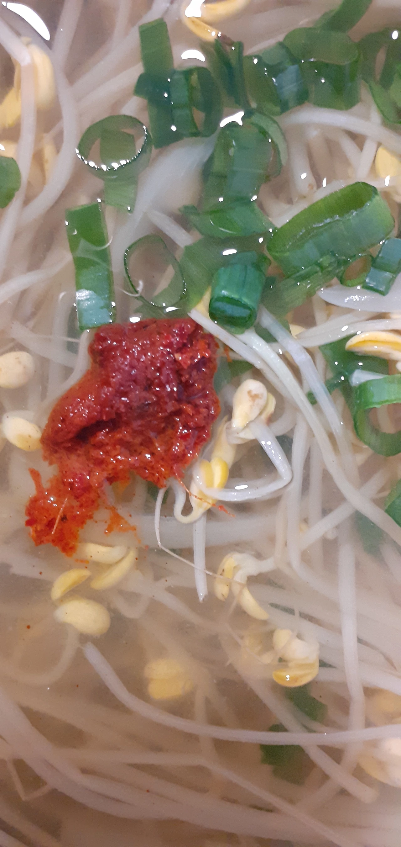 어릴 때부터 자주 먹어서 그런지 콩나물국은 내게 있어서 영혼의 음식이다. 2년 전 멕시코 여행을 다녀와서 지독한 독감에 시달릴 때 매일매일 콩나물국을 먹었는데 도움이 되었는지 거뜬하게 일어났다. 사람마다 체질에 따라 다르겠지만 나에게 있어 콩나물국은 만병통치약이다. 특별히 들어가는 것도 없이 멸치 몇 마리와 다시마 조각을 넣어 만든 국물에 콩나물을 넣고 뭉근하게 오래 끓인다. 거의 끝무렵에 양파와 파 마늘 생강 그리고 간장과 소금으로 간을 해서 고춧가루와 참기름을 한 방울 넣어 섞어 먹는다.
