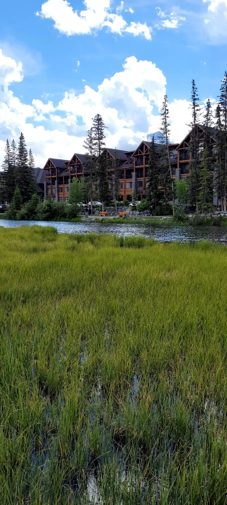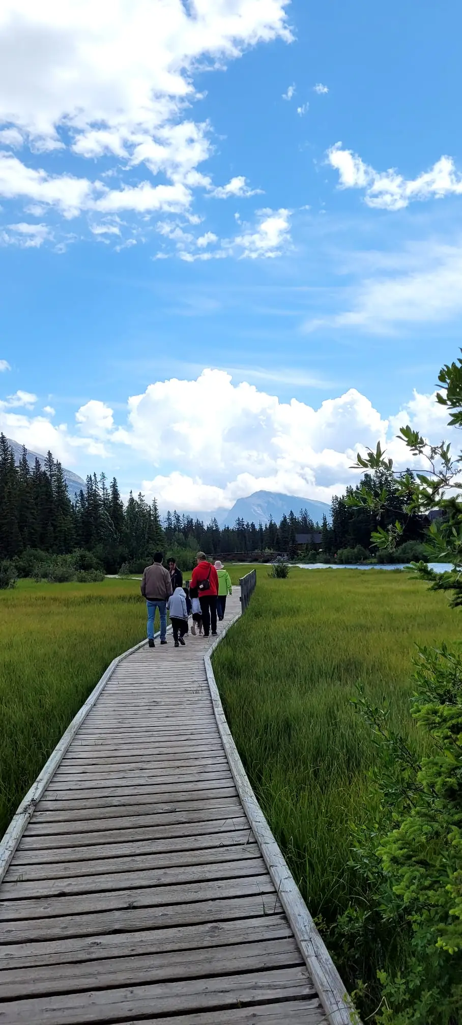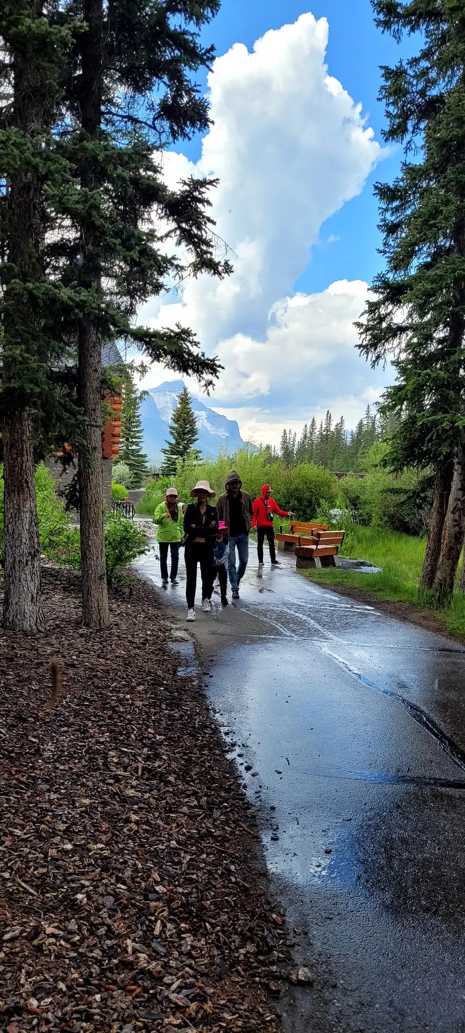 캘거리에서 한 시간 정도 가면 록키산에 있는 캔모어로 향한다. 아침도 맛있게 먹었으니 든든하다. 아이들이 앞서고 뒤서고 하며 캔모어를 향해 가는 길에 차들이 붐빈다. 연휴라서 그러려니 하며 가다 보니 어느새 록키산이 보인다. 산꼭대기에 아직도 눈이 녹지 않은 것이 보인다. 나무들이 울창하고 웅장한 바위산이 가슴을 뛰게 한다. 하늘은 파랗고 맑은 호수가 보이고 계곡에 물이 흐르는 곳을 지나 캔모어에 도착했다. 어디서 그 많은 사람들이 왔는지 발 디딜 틈도 없이 사람들로 북적거린다. 손주들을 챙겨서 가까운 계곡을 걸어본다. 화창하던 날이 갑자기 구름이 끼더니 바람이 심하게 분다. 나무로 된 다리를 걸으며 계곡을 구경한다.