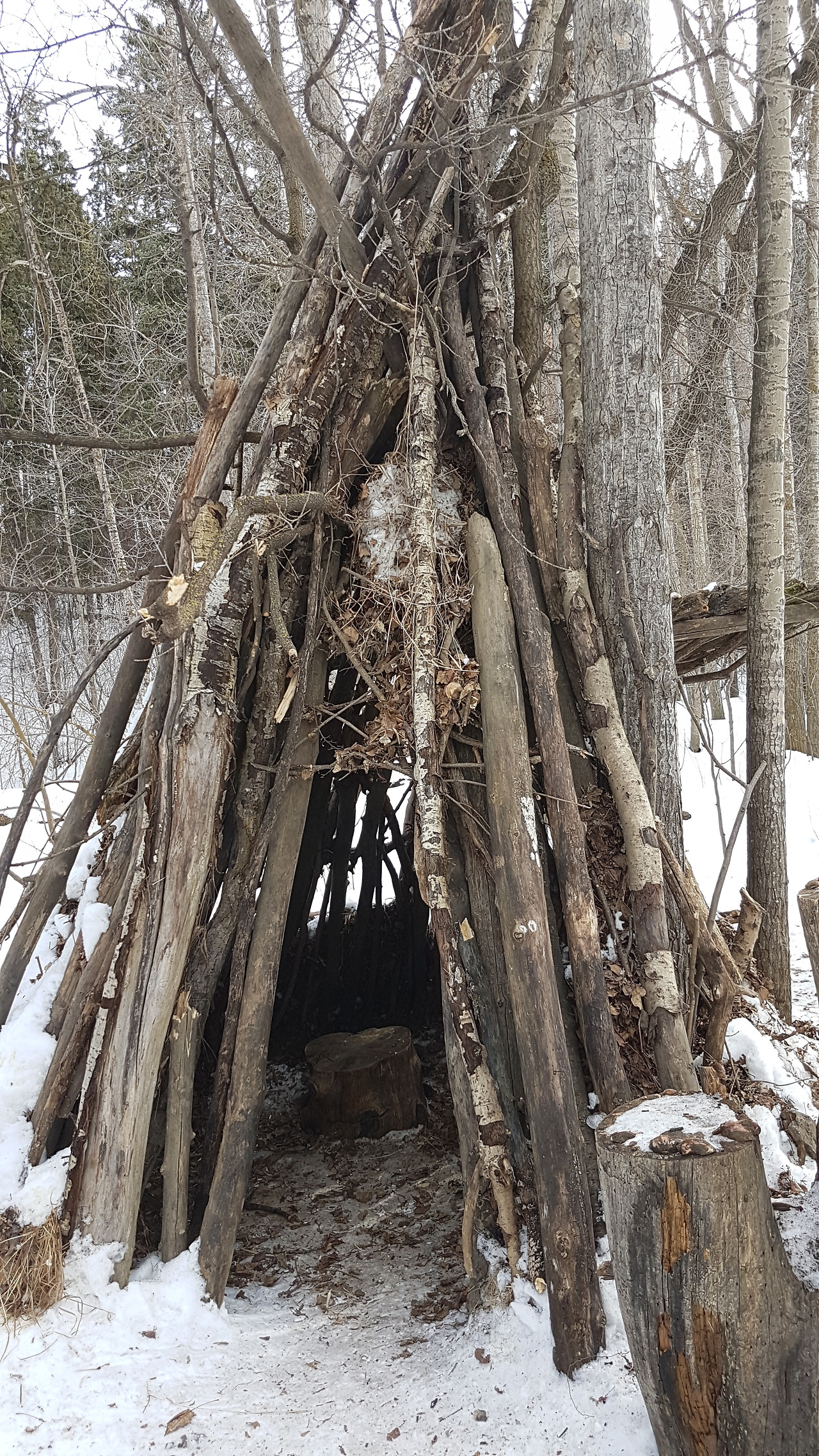 활엽수보다 침엽수가 많아 숲이 우거져 하늘이 보이지 않아서 산책길이 어둡다. 구불구불한 길을 따라 걸어가 본다. 끝없이 이어지는 길은 아침부터 온 눈이 하얗게 쌓여있고 한두 명이 걸어간 발자국이 있을 뿐 참으로 조용하다. 몇 백 년 동안 서 있는 나무들은 빛을 보고자 하는 방향으로 자란다. 곧바로 뻗은 나무가 하늘을 향해 서 있고 골짜기에 있는 나무는 빛이 있는 쪽으로 몸이 기울어져 삐딱하게 서 있다. 빛을 받기 위한 몸부림이 몸이 비뚤어지는 희생조차 감행하게 되었나 보다. 개울이 넓어 사람들이 건널 수 있게 작은 다리가 몇 개 놓여 있다. 다리 위를 걸어가며 양쪽에 내려오는 개울을 본다. 지금은 물이 얼고 그 위에 눈이 쌓여 물은 보이지 않지만 눈 쌓인 절벽과 계곡의 모습은 지상천국이다.