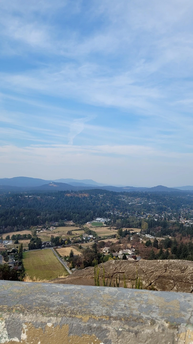 차로 산 꼭대기까지 올라가서 사방을 둘러보니 장관이다. 한쪽은 바다이고, 한쪽은 빅토리아 시내가 훤히 보이는 육지로 둘러 싸여 있다. 끝없이 넓은 바다에는 배들이 보이고 멀리 미국 경계선도 보인다. 산을 구경하고 공항으로 가는 길에 커다란 농장이 보인다.