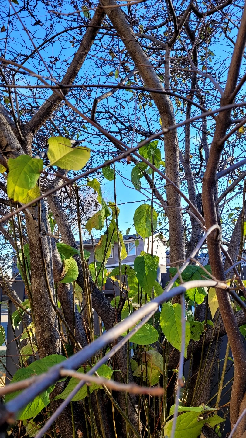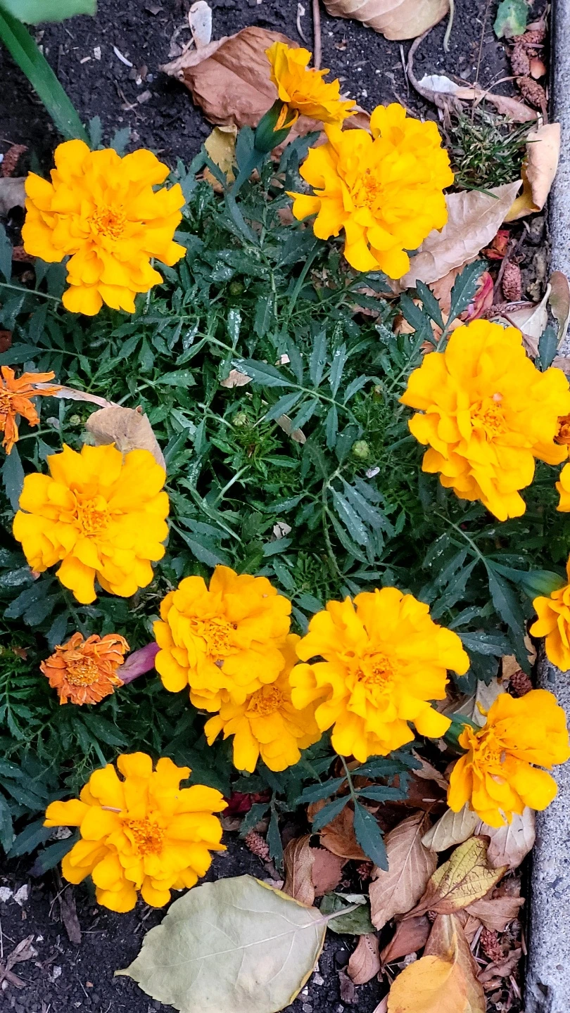 지난여름, 딸이 작은 앵두나무 한그루를 사 와서 뒤뜰에 심었는데 어린 나무도 가을이 오는 줄 알고 단풍이 들더니 하나둘 이파리가 떨어진다. 어디서 날아와 뿌리를 내리던 잡초 하나가 여름 내내 꽃 피울 생각을 하지 않았다. 잡초인가 하고 뽑아 버리려다 혹시 몰라 놔두었더니 꽃망울을 달기 시작하더니 꽃을 피우기 시작하였다. 몸보다 더 많은 노란 국화꽃을 피워 대며 정원을 환하게 하였다. 오고 가며 '예쁘다, 정말 예쁘다' 하며 사진을 찍고 칭찬을 했더니 한 달이 넘도록 장미나무 곁을 지키고 있었는데 어젯밤에 영하로 내려간 차가운 온도 때문에 얼어서 고개를 숙이고 있다.