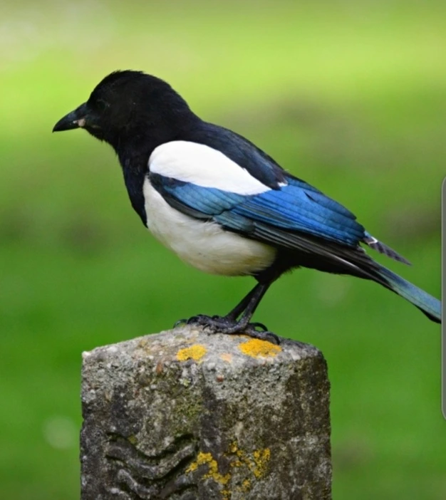 까치 한 마리가 뜰에 날아와 앉는다.