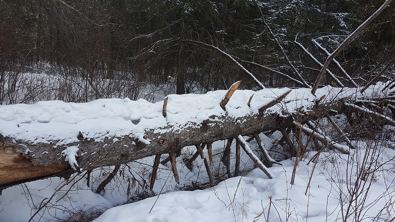쉬고싶어 누운 나무위에 눈이 소복히 쌓여있다.(사진:이종숙)