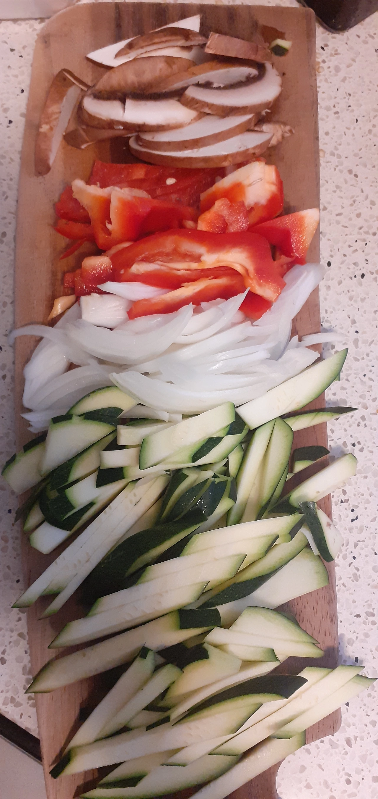 호박, 양파, 파프리카와 버섯을 채 썰어 놓고