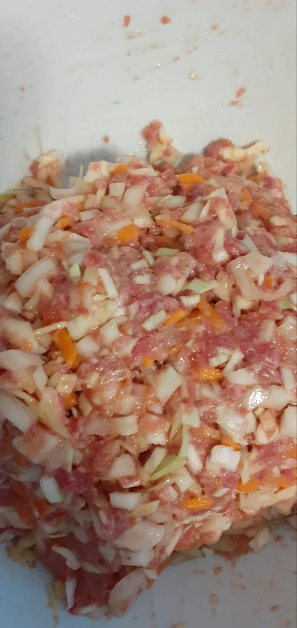 모든 재료를 잘 섞어서 만두피에 싸면 된다.