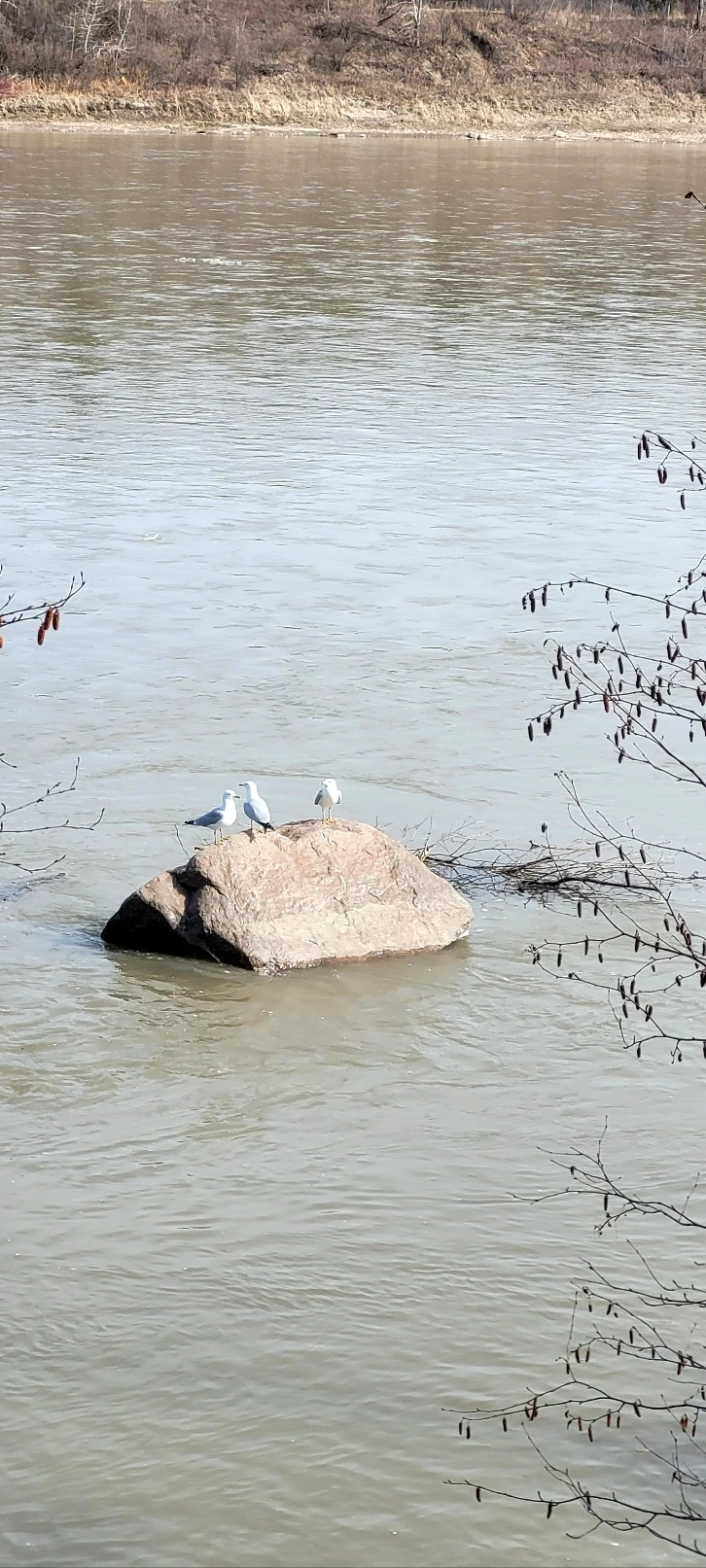 갈매기들이 강을 점령하고 있다.