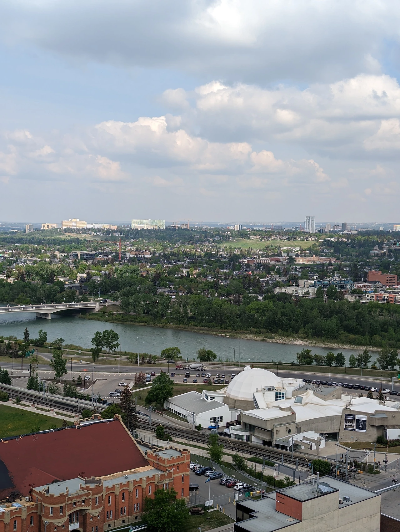 다운타운이라서 고층건물로 된 아파트도 많고 사무실도 많다. 사람들이 살아가고 일을 하며 돈을 버는 곳이다. 아침에 각지에서 오고 오후에는 다들 사는 곳으로 되돌아간다. 전철이 오고 가는 것이 보인다. 고가도로 위에 철로가 있어 전철이 막히지 않고 앞을 향해 간다.