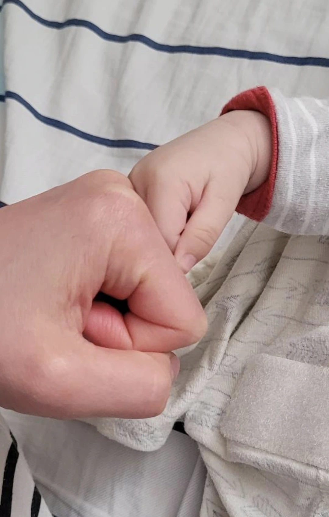 딸과 외손자의 주먹 악수