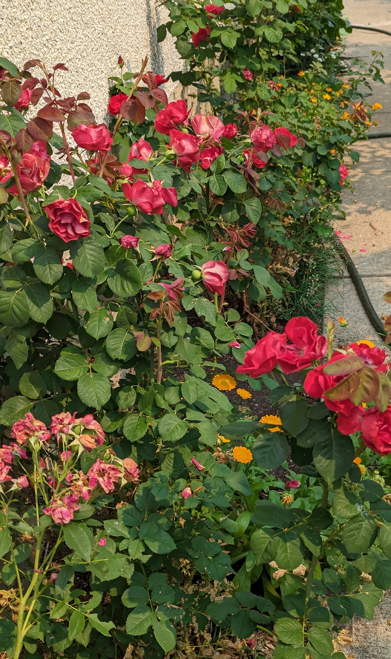 나뭇잎들이 바람 따라 춤을 춘다. 하늘은 구름 담요를 덮어 태양을 감추어 놓고 모르는 채 한다. 숨 쉬는 소리가 들릴 정도로 세상이 조용하다. 오가는 차도 없고 사람도 없다. 심심한 까치가 소나무가지에서 다람쥐와 논다. 동네가 오래되다 보니 오래된 나무들이 많다. 사람보다 나무가 더 많은 동네다. 우리 집만 해도 대충 스무 그루가 넘는 나무가 자란다. 앞뜰에 커다란 전나무와 앉은뱅이 소나무가 있고 밥풀꽃 나무와 자작나무와 소나무가 있다. 그 옆으로 개나리 나무와 라일락 나무가 있고 사과나무 두 그루와 마가목나무가 있다. 옆으로 이름은 모르는데 하얀 꽃이 피며 열매 맺는 나무가 있고 뒷문 옆에는 앵두나무가 있다. 차고와 집 옆으로 앵두나무가 두 그루 더 있고 해마다 맛있는 딸기를 선물하는 딸기나무까지 하면 스무 그루의 나무들이 우리 집을 둘러싸고 살아간다. 이 집에서 산 세월이 올해로 34년이다. 오랜 세월 동안 같은 집에서 살아서 그런지 나무 하나, 꽃 하나하나가 소중한 식구가 되었다. 꽃이 피면 예뻐서 들여다 보고, 꽃이 피지 않고 시들시들하면 어디가 아픈가 해서 들여다본다. 몇 년 전에 벌레로 고생하던 장미가 올해는 건강하게 피고 지고 한다. 어디선가에서 이사 온 금잔화는 화려하다 못해 눈부시게 피고 진다. 개나리 나무는 물이 부족했는지 꽃 한 송이 피지 않고 게으름을 피우며 이파리만 무성하다. 자작나무는 나이가 많아 죽은 가지가 해마다 늘고 앉은뱅이 소나무는 기력을 다해서 누렇게 변해간다. 나무도 나이가 많아지면 갈 준비를 하는 것 같다. 집 나이가 내년이면 반백 살이다. 비바람 눈보라를 견디고 살아 온 집을 지키며 살아온 나무들이 하나 둘 늙어간다. 사과나무도 죽은 가지가 많아 남편이 봄에 전지를 해주었는데 사과는 몇 개 없지만 새파란 이파리를 소담하게 품고 있다. 꽃샘추위로 앵두꽃이 얼어서 앵두는 몇 개 달리지 않았지만 건재하다. 내년에는 많이 달릴 것이라고 믿는다. 지난날을 생각해 보면 나무도 해 걸이를 하는 것 같다. 올해 얼마 안 달렸으니 내년을 기대해 본다. 가지 하나가 죽은 마가목 나무도 나름대로 열매가 노랗게 익어가고 여름을 잘 견디고 있다. 세월을 이길 장사가 없다는 말이 맞다. 영원히 살 것 같은 나무도 한 해가 다르게 늙어가는 모습이 사람과 다름없다. 이 집을 사는 날, 집을 산다고 좋아하던 아이들이 세월 따라 나이 들고 손주들이 그 나이가 되었다. 세월은 그렇게 말없이 가고 나무들도 덩달아 세월을 따라간다. 유난히 가물었던 해에 소나무가 떠날 차비를 하는 것을 불 때마다 마음이 안 좋다. 어제도 소나무 옆에 서서 어서 기운내고 일어나야지 하며 가지를 만져주었다. 말 못 하는 나무지만 내 마음을 알아듣고 다시 살아났으면 하는 바람이다. 죽어가는 소나무 옆에 이름 모를 어린 나무 하나가 자라서 다행이다. 갑자기 참새들 수다소리가 들려온다. 아침 일찍 한바탕 수다를 떨고 각자 할 일을 하러 나갔던 참새들이 하나둘 돌아오기 시작한다. 앞뜰에 있는 밥풀꽃 나무가 그들의 집합 장소다. 하루의 일을 이야기하고 잠을 자는 곳이기도 하다. 가지마다 앉아서 놀기도 하고 쉬기도 한다. 까치와 까마귀와 참새가 놀고 블루제이와 로빈이 놀러 오는 곳이다. 우리 동네는 새들이 집을 지킨다. 까치들이 담 위에 앉아서 깍깍대고 참새들이 돌아다니며 동네 소식을 전한다. 하늘은 여전히 구름으로 가려져 있고 비는 오지 않는다. 어제는 저녁을 먹는데 맑은 하늘에서 굵은 소나기가 햇살을 뚫고 내렸다. 호랑이가 장가를 갔는지 여우가 시집을 왔는지 한동안 쏟아지던 소나기가 멈춘 거리는 언제 비가 왔냐 하고 바짝 말라 버렸다. 비가 천천히 오래도록 내리면 좋은데 무섭게 쏟아져서 급하게 흘러가 버린다. 자연은 자연대로의 고집이 있어서 하고 싶은 대로 한다. 한국은 비가 많이 와서 난리인데 가물은 이곳은 비를 기다리는데 오지 않는다. 가까운 곳에 강처럼 커다란 호수가 있다. 몇 년 전부터 물이 줄기 시작한다 고 걱정한다. 주위에 많았던 나무가 없어지며 생겨나는 문제점이다. 사람들은 하나만 알고 둘은 모른다. 나무와 물과 숲이 공존해야 하는데 한 가지만 생각하며 산다. 나무가 없어지면 호수에 물이 마르고 동물들은 서식지를 옮긴다. 인간의 욕심으로 생겨나는 크고 작은 문제들이 늘어나는데 해결책을 찾지 못하고 다른 곳에서 답을 찾으려 한다. 자연의 황폐는 인간조차 살 수 없게 한다는 것을 모른다. 지구를 지키지 못하고 달을 가고 별을 연구하면 되는 줄 안다. 무엇이 답인지 어디로 가고 있는지 잘 모르겠다. 산불은 여전히 꺼지지 않고 있다. 비가 얼마나 오면 산불이 꺼질지 모르겠다. 비가 오지 말아야 할 곳에는 비가 오고, 와야 할 곳은 오지 않는다. 자연의 신의 자비를 구해본다. 바람 따라 춤을 추는 나뭇잎은 아랑곳하지 않고 이리저리 흔들고 있다.