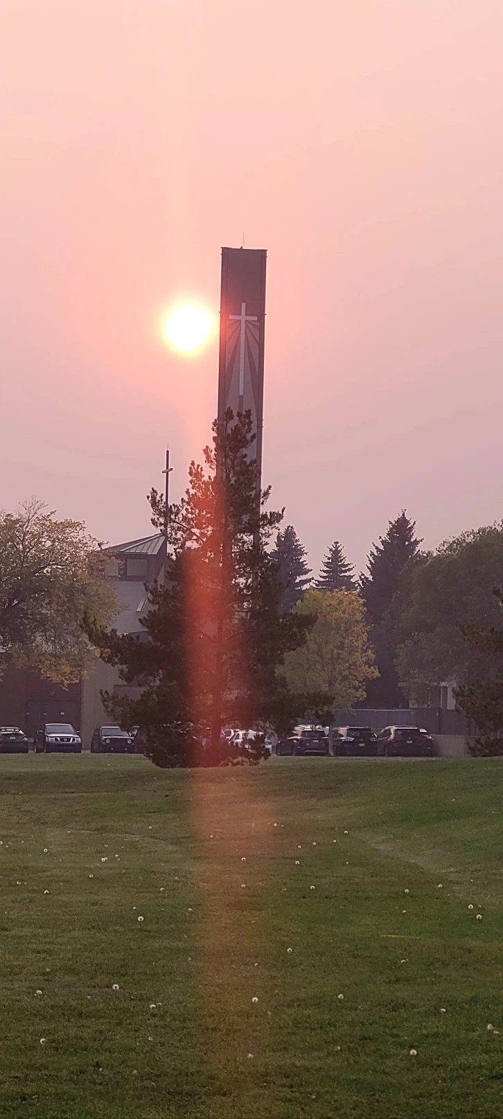 동네 한 바퀴 코스는 정해져 있다. 초등학교 운동장을 지나 캐네디언 성당 앞으로 걷는다. 일요일 저녁 미사를 위해 온 신자들 차가 주차장에 꽉 차 있다. 미사시간이 신자들의 편리를 위해 주일에는 오전에 세 번 있고 저녁에 한번 있다. 아침에 일찍 오는 사람, 저녁에 오는 사람, 또는 늦잠 자고 점심 전후로 오는 사람들도 나누어진다. 일요일에 각자의 시간대에 맞춰 미사를 봉헌하면 된다.