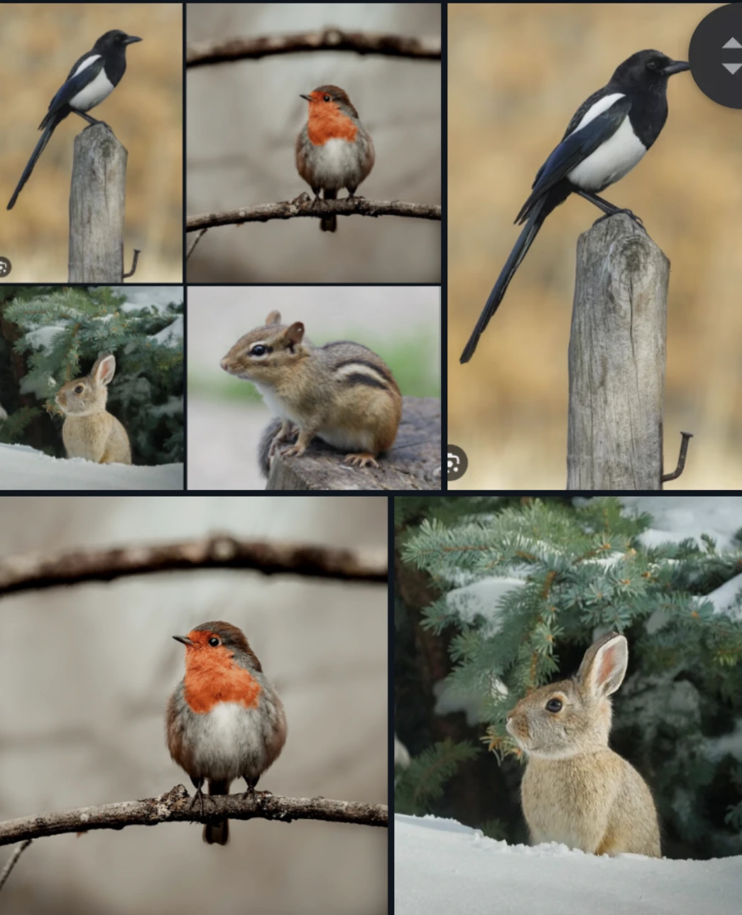 토끼: 너희들 여기서 뭐 하니? 다람쥐 1: 우리 여기서 참새가 가져온 음식을 먹으며 놀고 있었어.