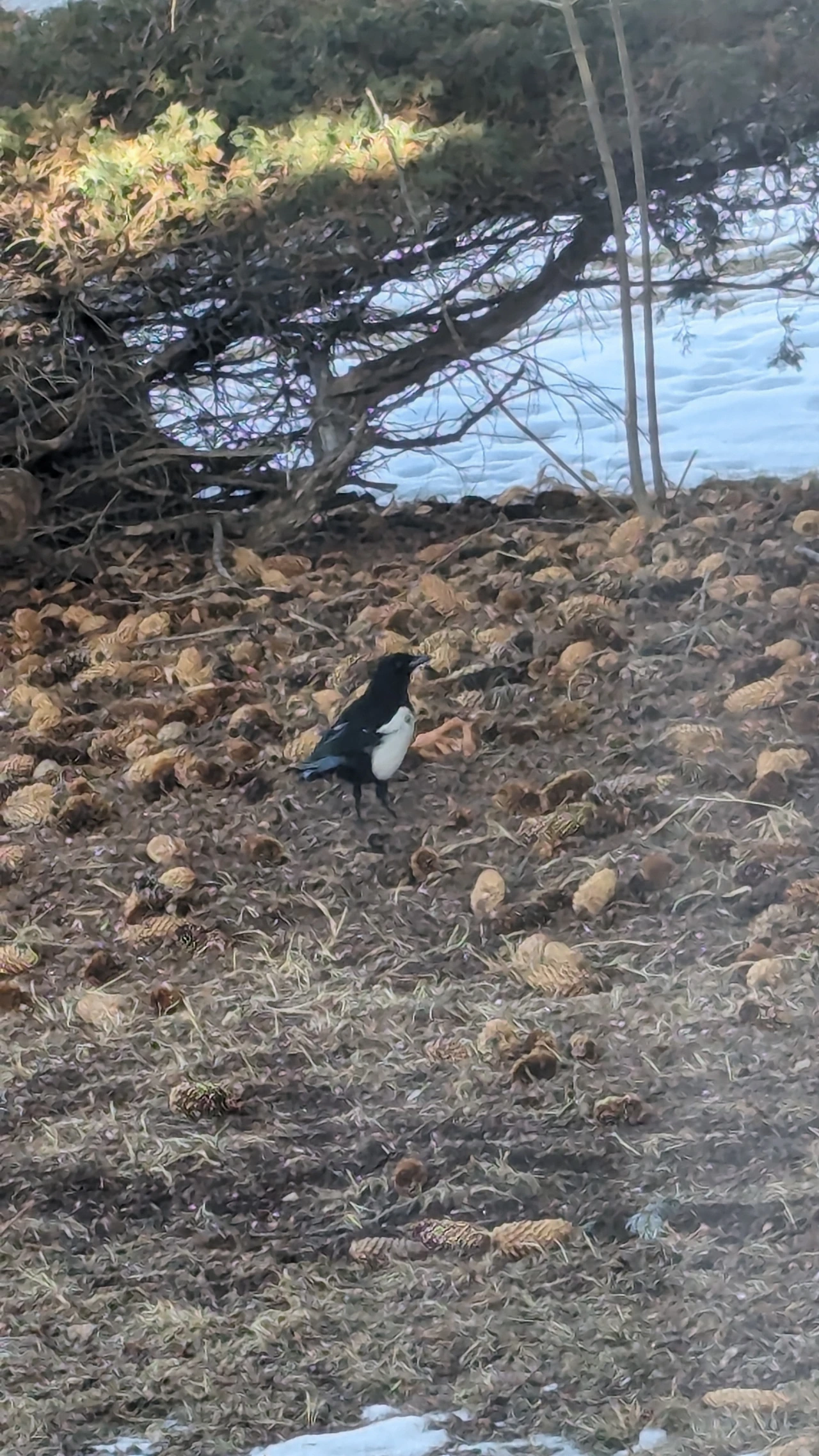 전나무 아래에 솔방울이 많이 떨어져 뒹군다 길건너에서 놀던 까치 한쌍이 날아와 솔방울을 굴리며 먹을 수 있나 살피다가 나무 가까이 간다 나무 뒤쪽에 눈이 쌓여있지만 먹을 것은 보이지 않는다 나무 기둥에 무언가 보이는지 까치 한 마리가 나무기둥에 올라앉아 부리로 찍어본다 배가 고픈지 아니면 심심한지 같은 행동을 반복한다 아무것도 없어 보이는데 그들의 눈에는 보이는지 여기저기 찍어보고 뒤집어본다 별 볼 일 없는지 옆에 있는 자작 나뭇가지에 앉아서 하늘을 본다 바람이 불 때마다 소나무가지도 흔들린다 궁금한 까치는 소나무 아래로 가서 작은 나뭇가지를 입에 물고 나와서 잔디 위에 던지며 한참을 가지고 논다 먹을 것이 아니라도 좋은지 심심한 까치는 이리저리 돌아다니며 찍어보며 심심한 하루를 산다 창문에 기대어 까치를 보는 나는 까치와 다르지 않다 심심한 나와 하릴없는 까치는 안 보이면 궁금한 친한 친구다