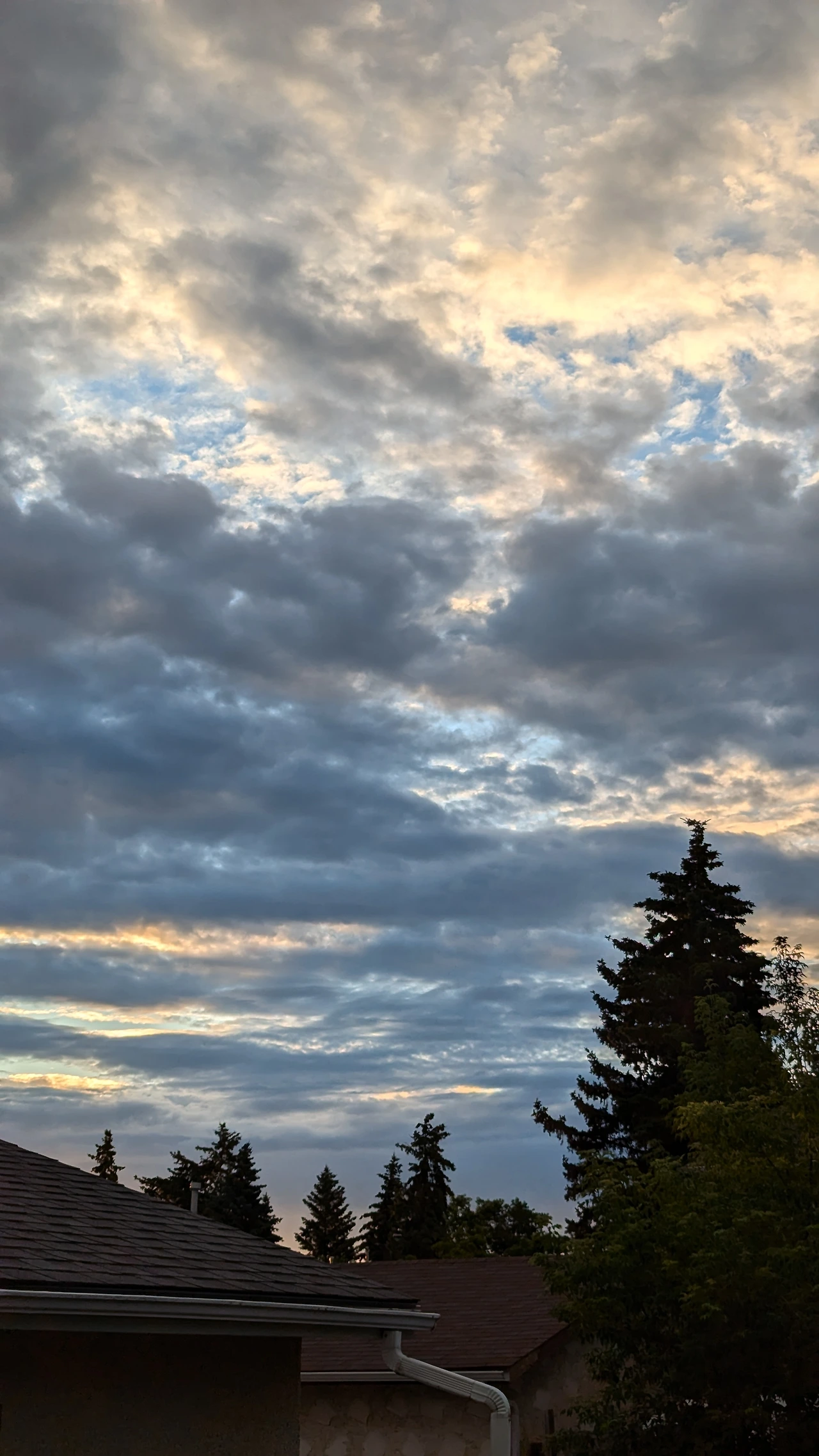 이민생활이라는 것이 누구나 그렇지만 잠도 제대로 자지 못하고 정신없이 살아서 인지 아침잠도 없어지고 가만히 앉아 있지 못하는 게 습관이 되었다. 아침에 잠이 깨면 아무리 피곤해도 일어나 앉아 무언가를 하며 새 하루를 맞는다. 아침에 일어나서 물 한 모금 마시러 부엌에 나가 커튼을 열어보니 구름이 하늘에서 요동을 치는 모습이 보여 문을 열고 뜰에 나갔다. 그림 같은 하늘이 멋있어서 사진 한 장을 찍는데 그때 마침 새가 날아간다. 카메라에 잡힌 새 모습이 장관이다.