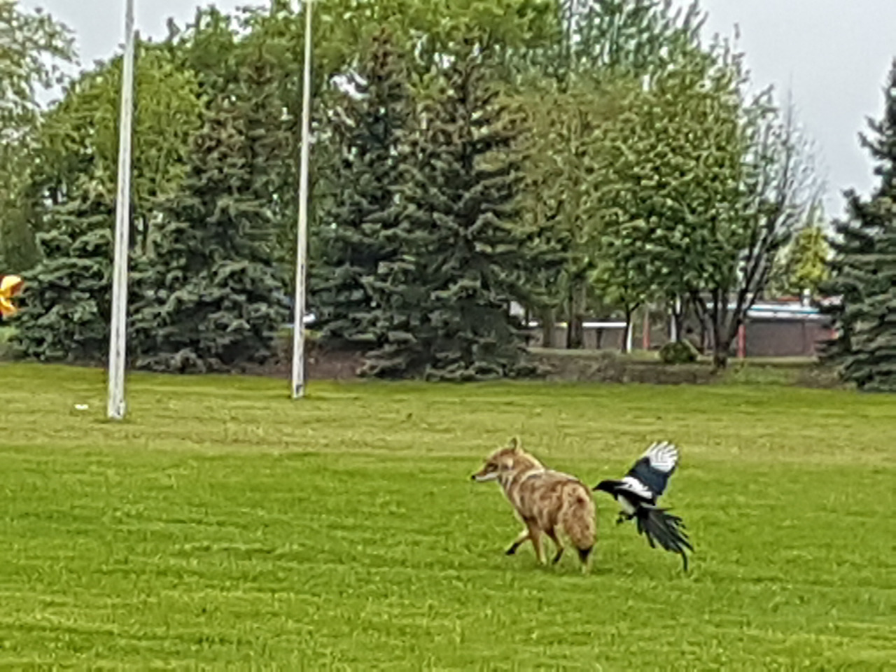 늑대가 동네를 돌아다닌다 건널목에서 늑대가 길을 건넌다 차를 세우고 바라보았다 늑대는 차를 향해 앉아서 우리를 바라본다 늑대를 보고 까치들이 몰려온다 늑대는 못본척하고 까치를 무시하고 앞으로 걸어간다 까치들은 늑대를 쫓아가며 약을 올린다 늑대는 참는다 묵묵히 앞으로 걸어가고 까치들은 그냥 날아가 버린다