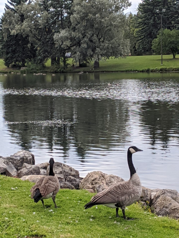 누군가의 가족이 죽은 누군가를 위해 이곳저곳에 벤치를 놓아두고 죽은 이를 기억한다. 호숫가에 의자가 있어 앉기 전에 내용을 읽어본다. 80세에 떠난 이를 위한 의자다. 죽은 사람이 생전에 좋아했던 곳에 의자를 놓아두고 식구들이나 친구들이 와서 함께 이야기한다. 어찌 생각하면 공동묘지보다 그 방식이 좋은 것 같은 생각도 든다. 죽은 사람이야 어디를 가도 상관없지만 영혼이 와서 평화로운 풍경을 보면 행복할 것 같다. 영혼에게 인사를 하고 고맙게 쉬며 호수를 바라본다. 나무가 그림처럼 아름답게 자란다. 크고 작은 나무들이 저마다 최선을 다하며 자연에 순종하고 살아간다. 비가 와서 넘어진 나무도 있지만 그 누구를 탓하지 않는다. 호수 옆에 부부 오리 한쌍이 앉아서 호수를 바라본 다. 우리가 지나가도 눈 하나 깜빡하지 않고 앞만 쳐다보고 있다. 바로 앞에서 사진을 찍어도 꼼짝 안 한다. 동물이 대접받는 곳이니 사람을 두려워하지 않는다.